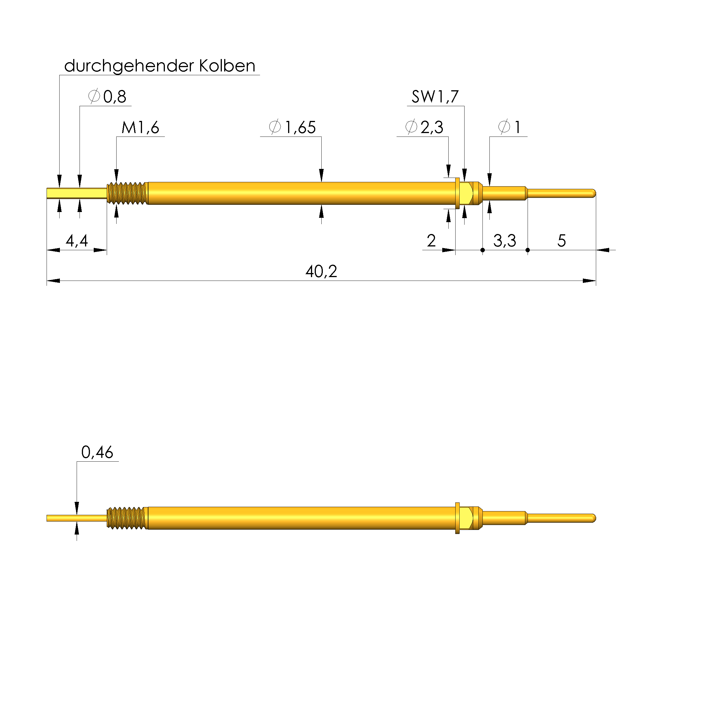 | Durchgehender Kolben: | ø0,8 x 0,46 x 4,4 |