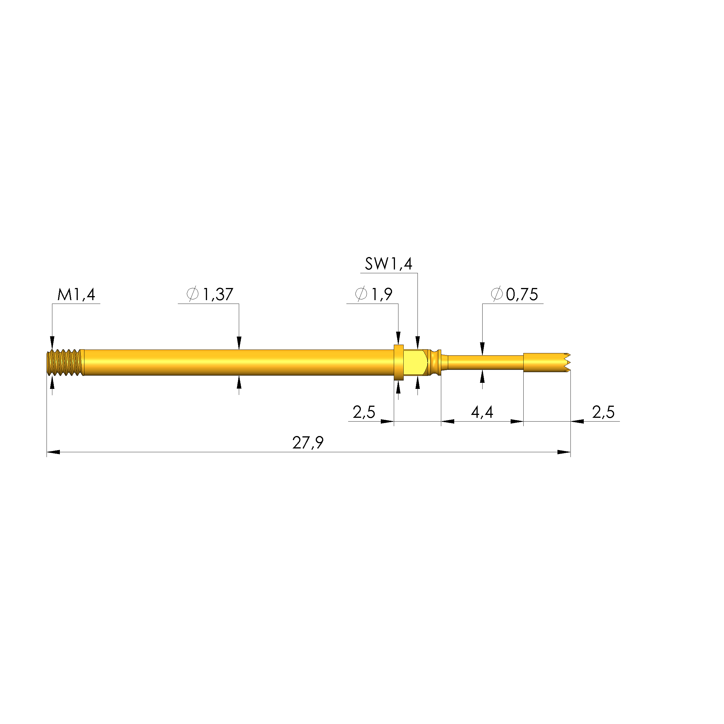 - Gesamtlänge: 27,9 mm