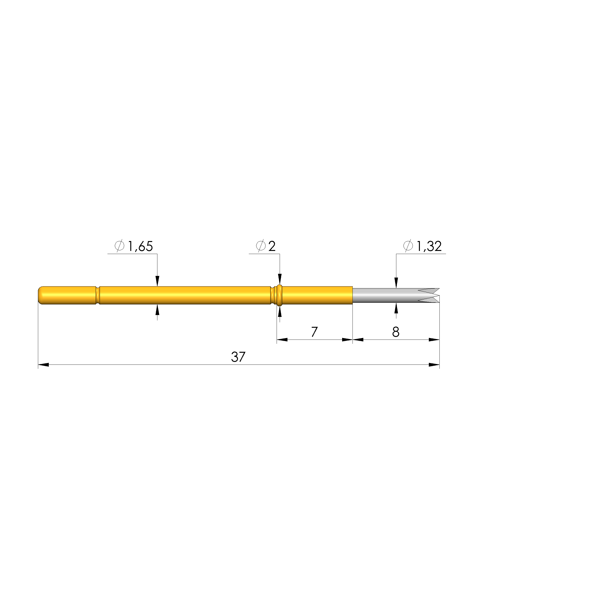 - Mittig-rollierte Variante mit geringem Taumelspiel zur Kontaktierung von kleinen Prüfpunkten