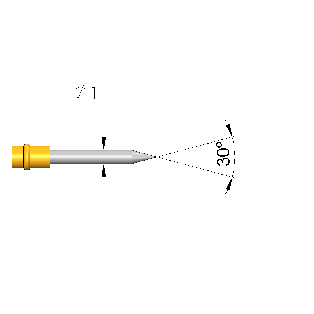 - Kopfform: 01 Spitze 30°, selbstreinigend