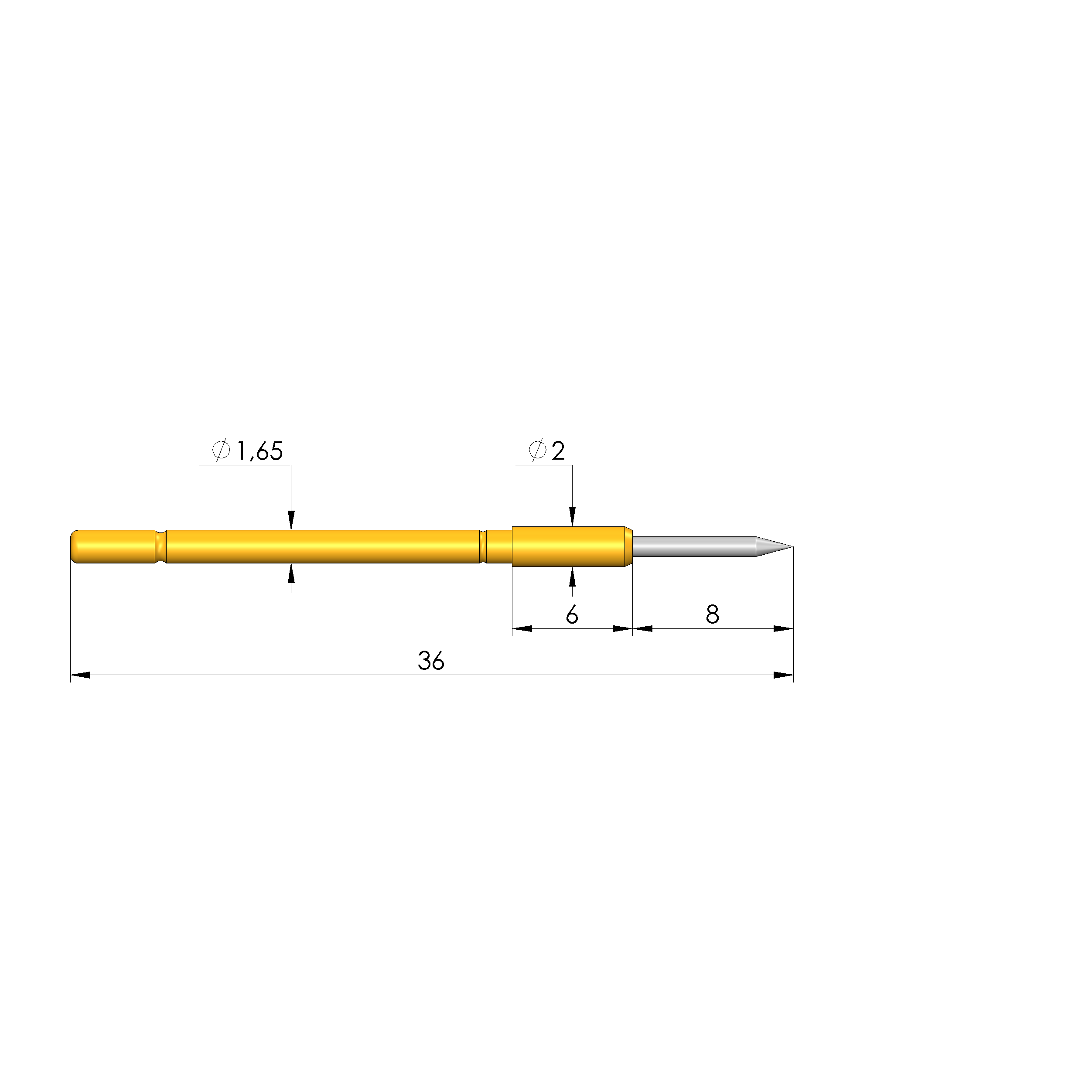 - Mittig-rollierte Variante mit geringem Taumelspiel zur Kontaktierung von kleinen Prüfpunkten