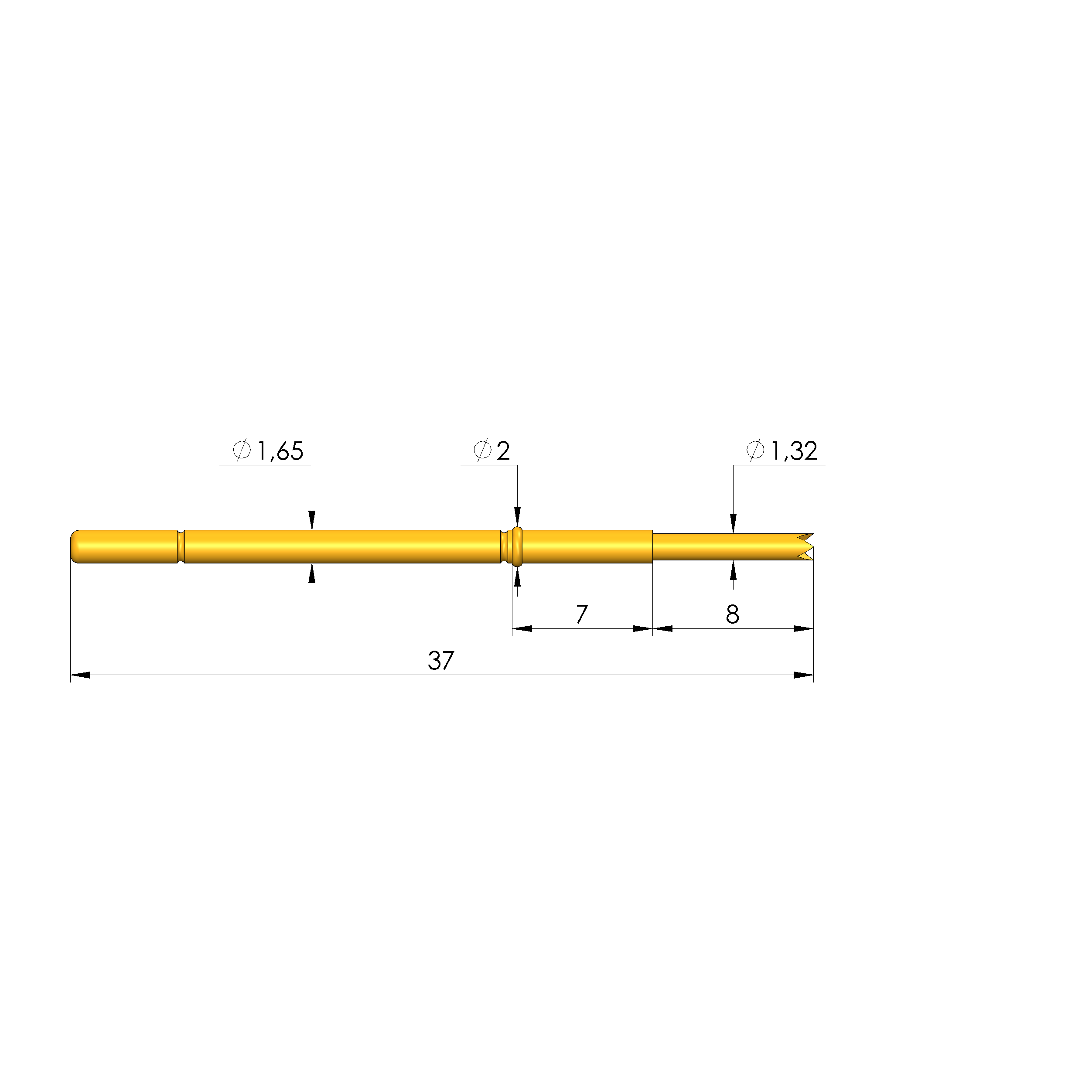 - Mittig-rollierte Variante mit geringem Taumelspiel zur Kontaktierung von kleinen Prüfpunkten