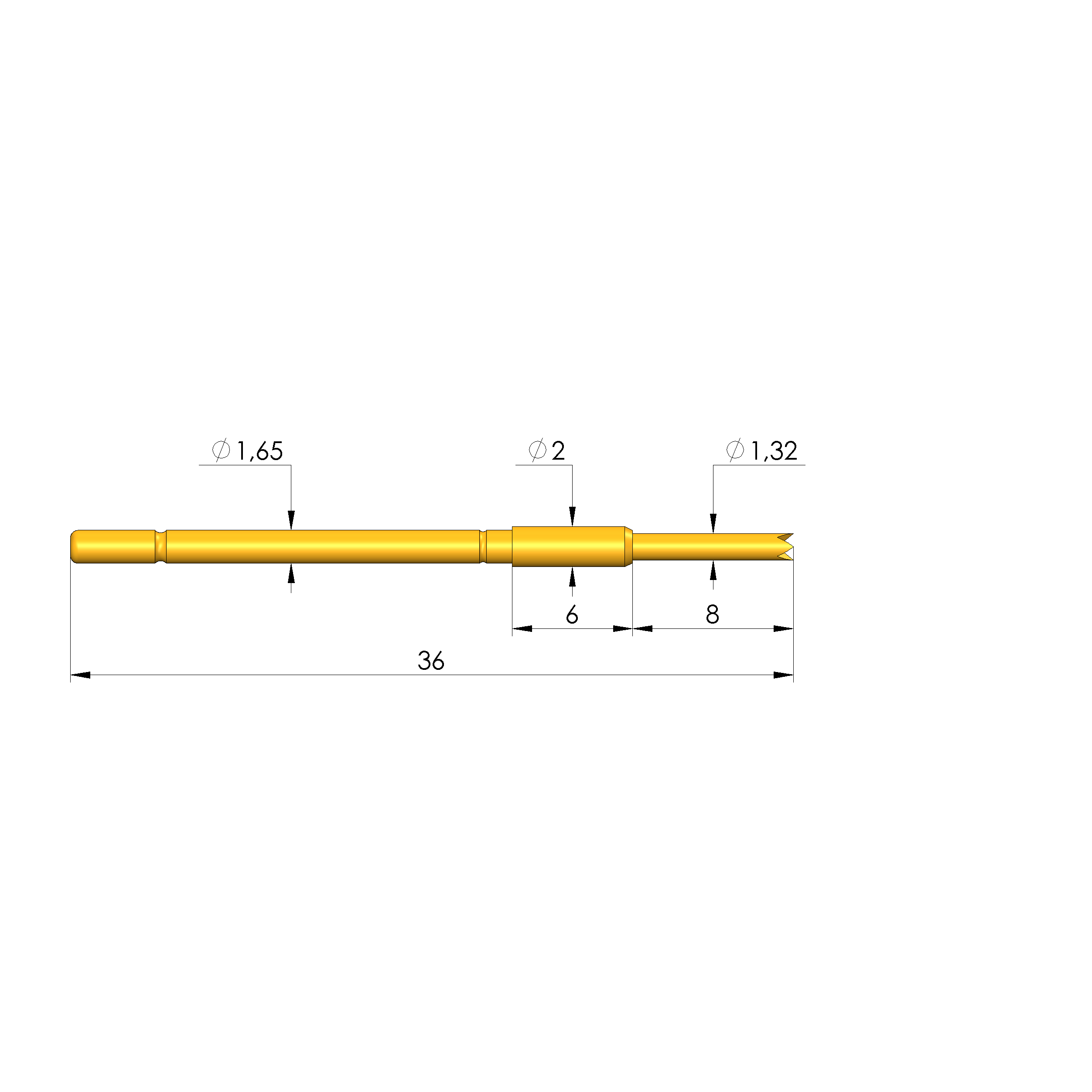 - Mittig-rollierte Variante mit geringem Taumelspiel zur Kontaktierung von kleinen Prüfpunkten