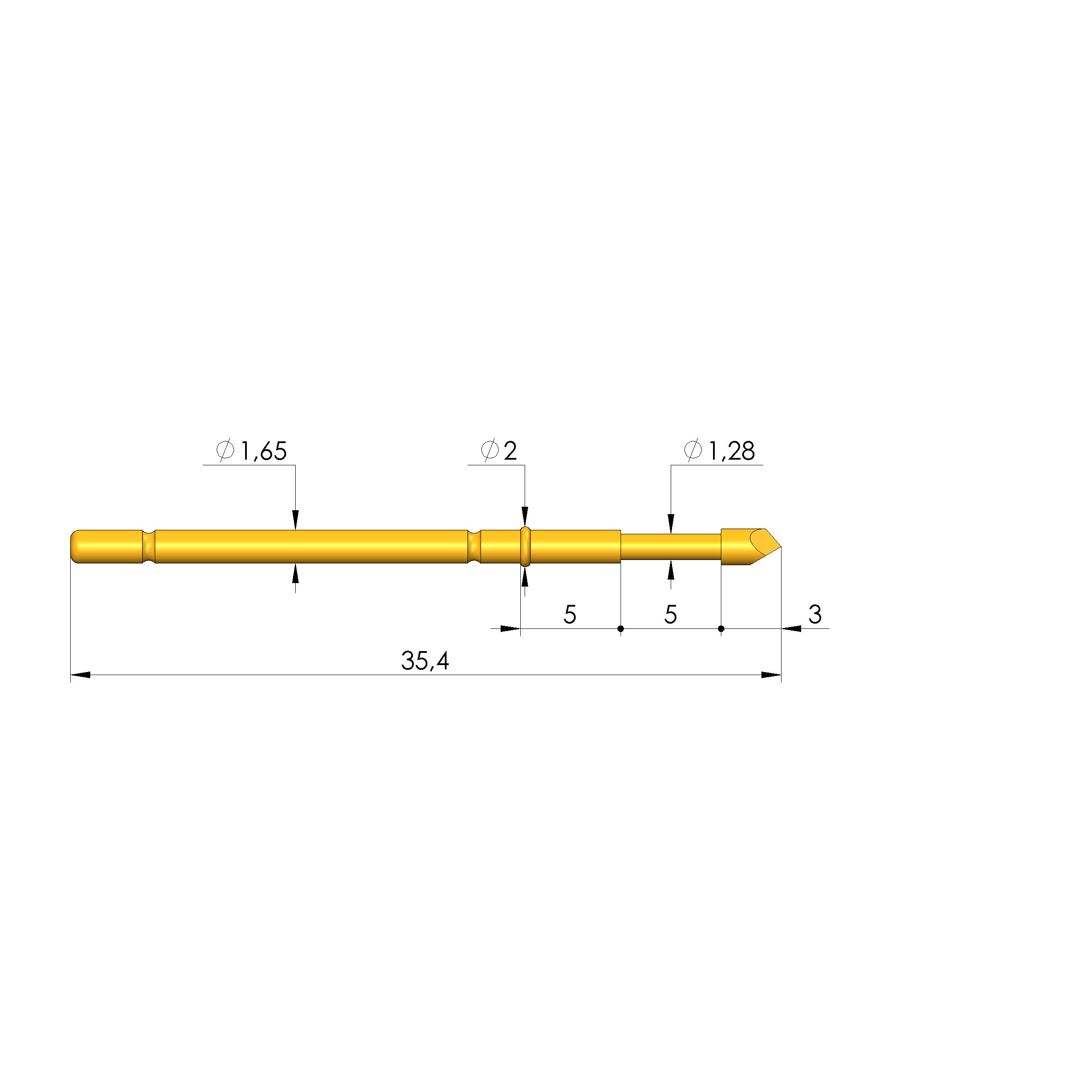 - Mittig-rollierte Variante mit geringem Taumelspiel zur Kontaktierung von kleinen Prüfpunkten