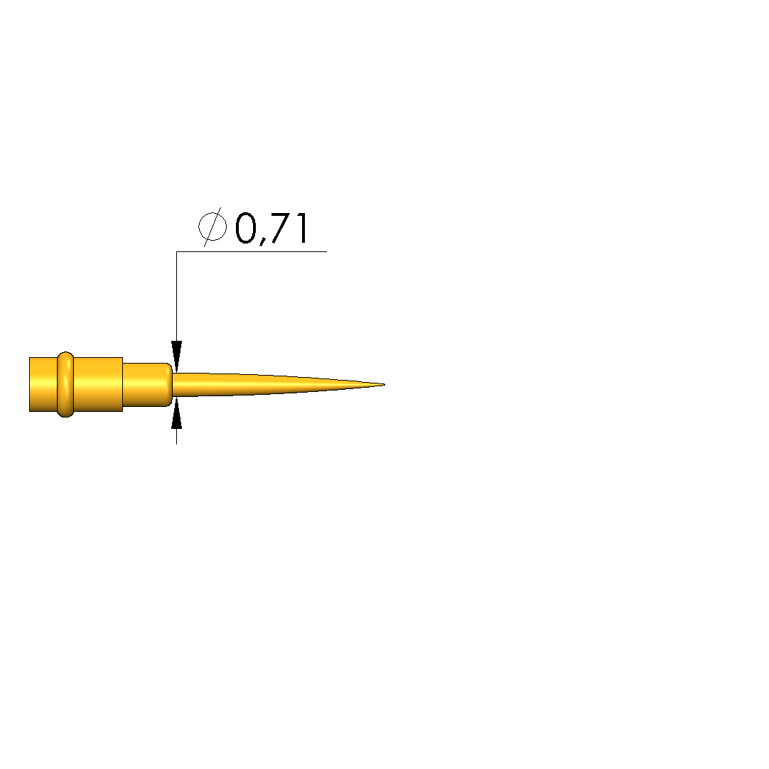 - Mittig-rollierte Variante mit geringem Taumelspiel zur Kontaktierung von kleinen Prüfpunkten