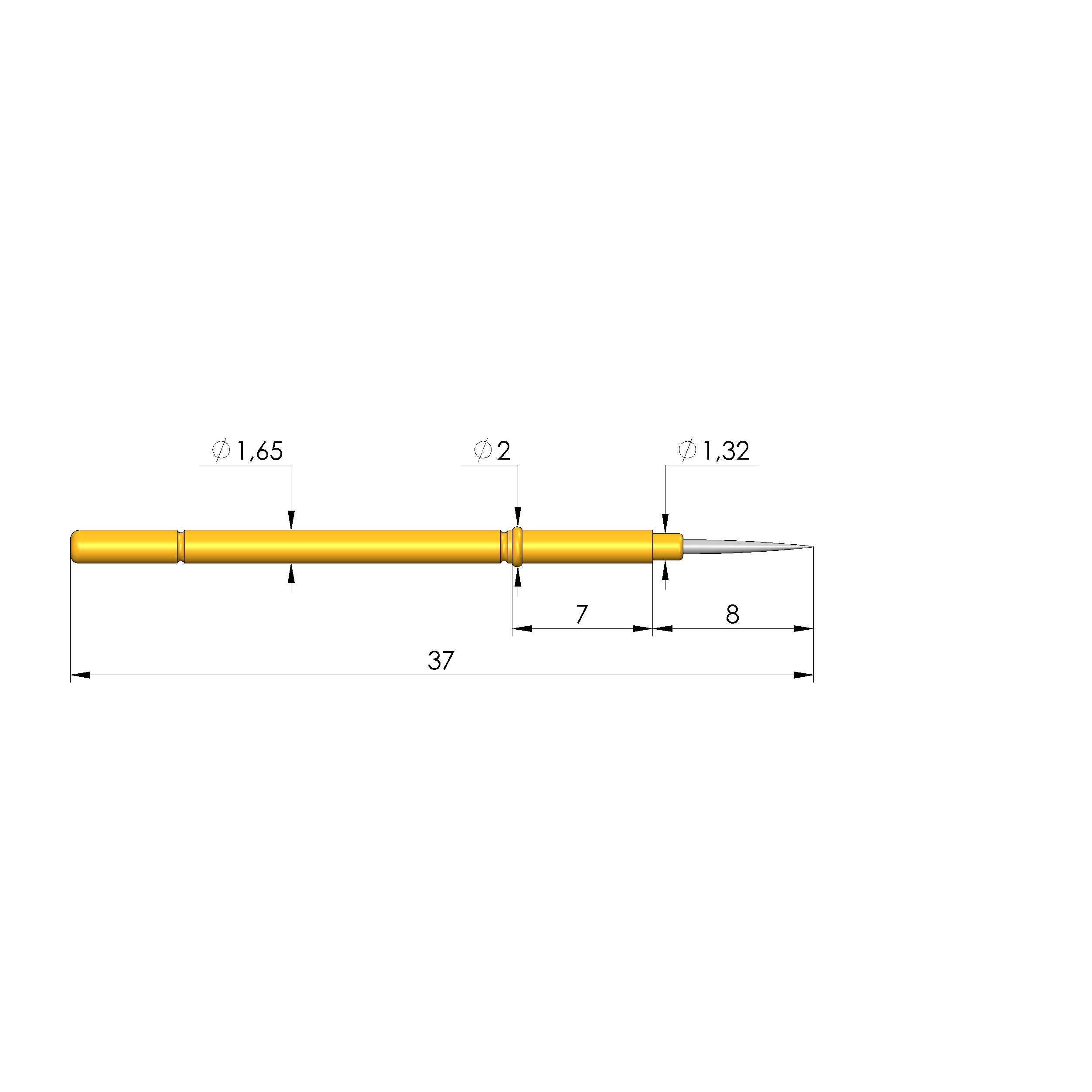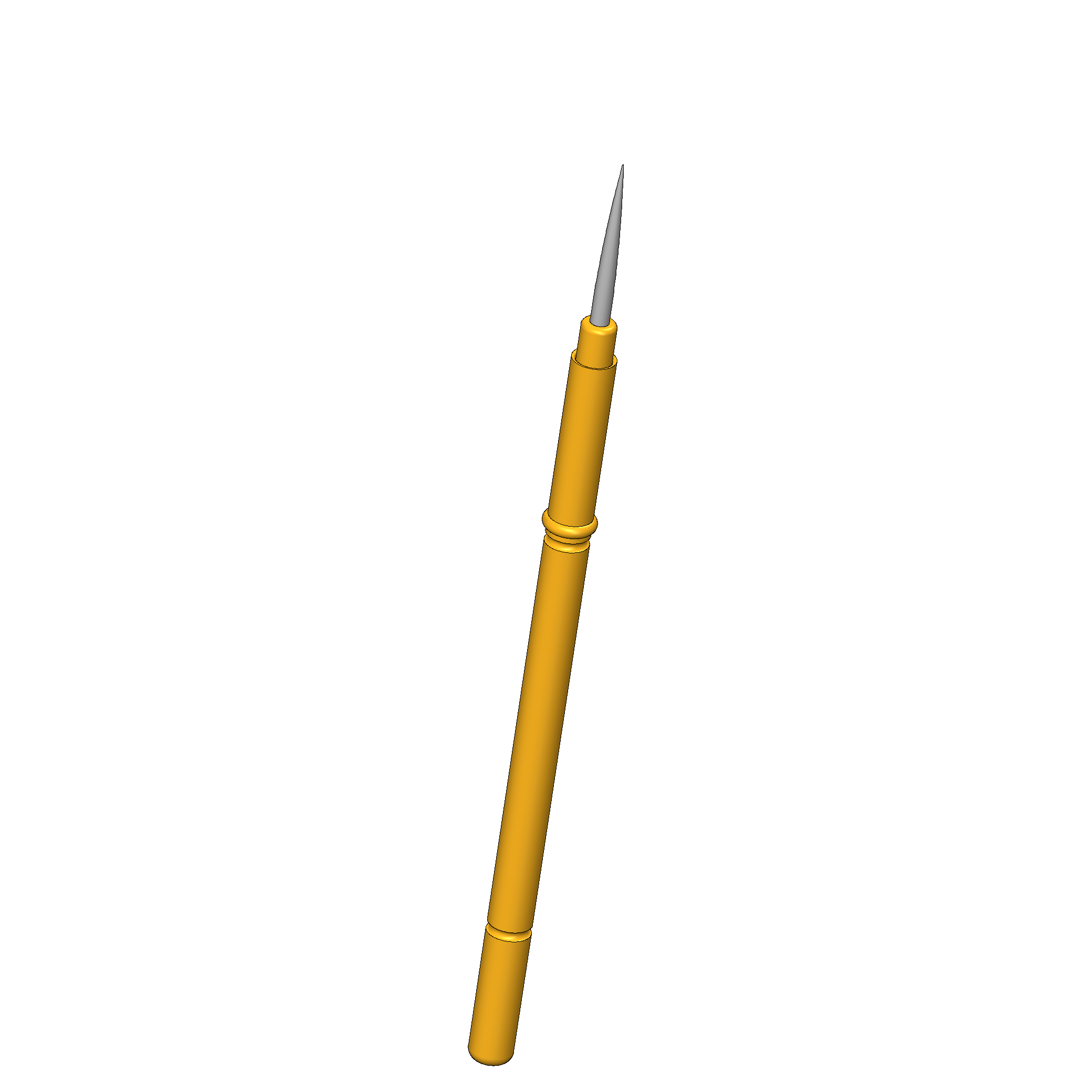 - Mittig-rollierte Variante mit geringem Taumelspiel zur Kontaktierung von kleinen Prüfpunkten