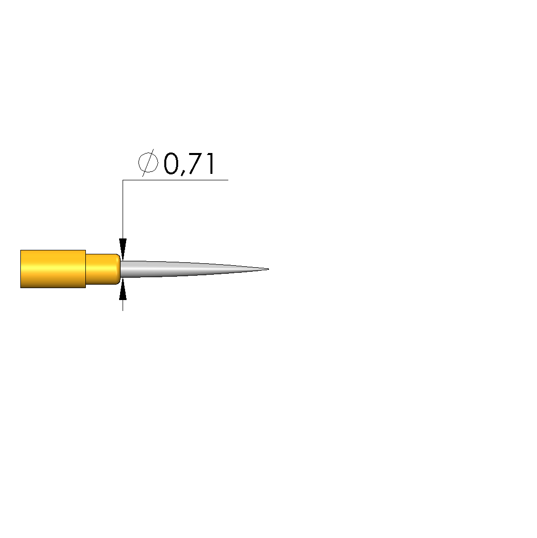 - Mittig-rollierte Variante mit geringem Taumelspiel zur Kontaktierung von kleinen Prüfpunkten