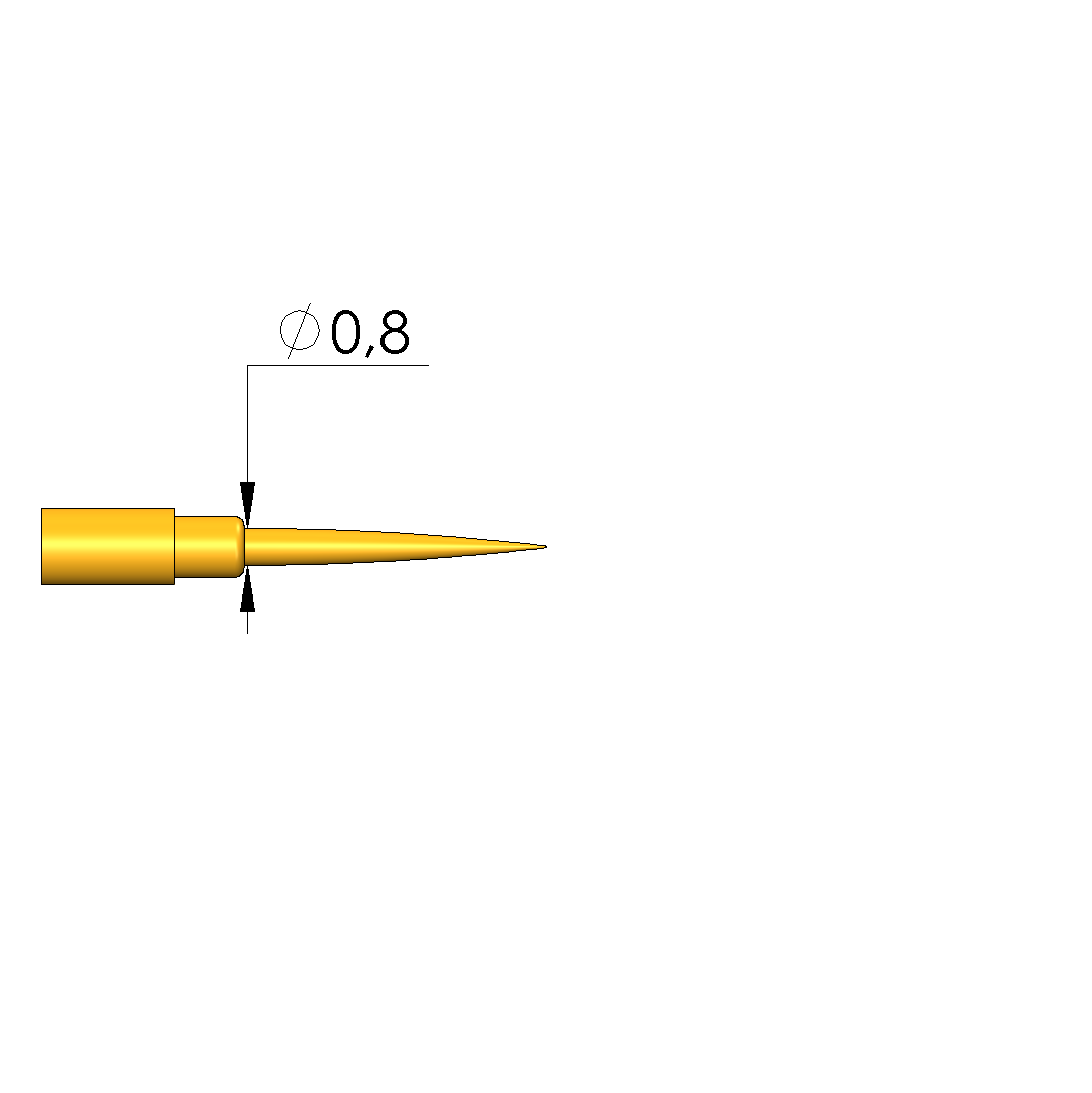 - Mittig-rollierte Variante mit geringem Taumelspiel zur Kontaktierung von kleinen Prüfpunkten