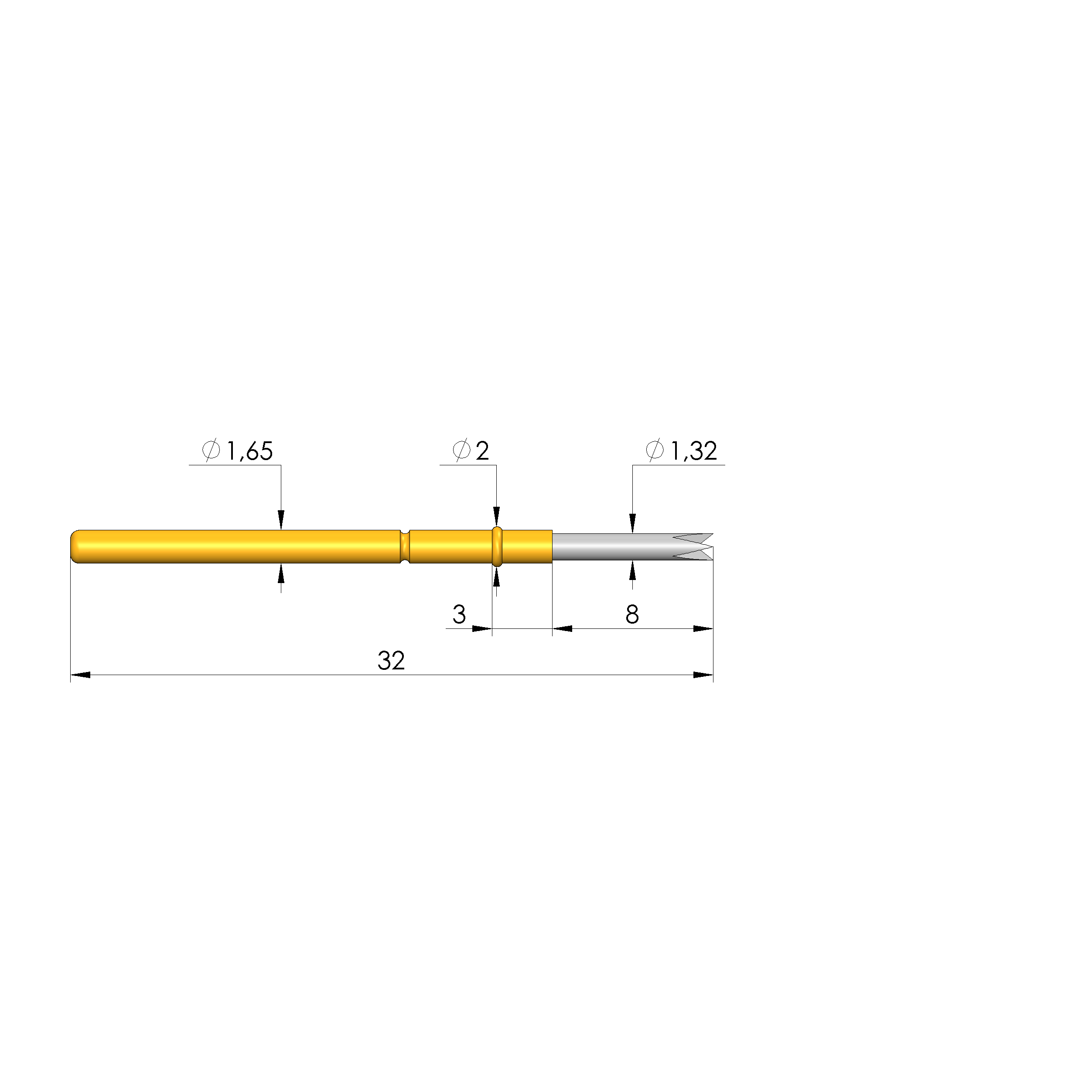 - Mittig-rollierte Variante mit geringem Taumelspiel zur Kontaktierung von kleinen Prüfpunkten