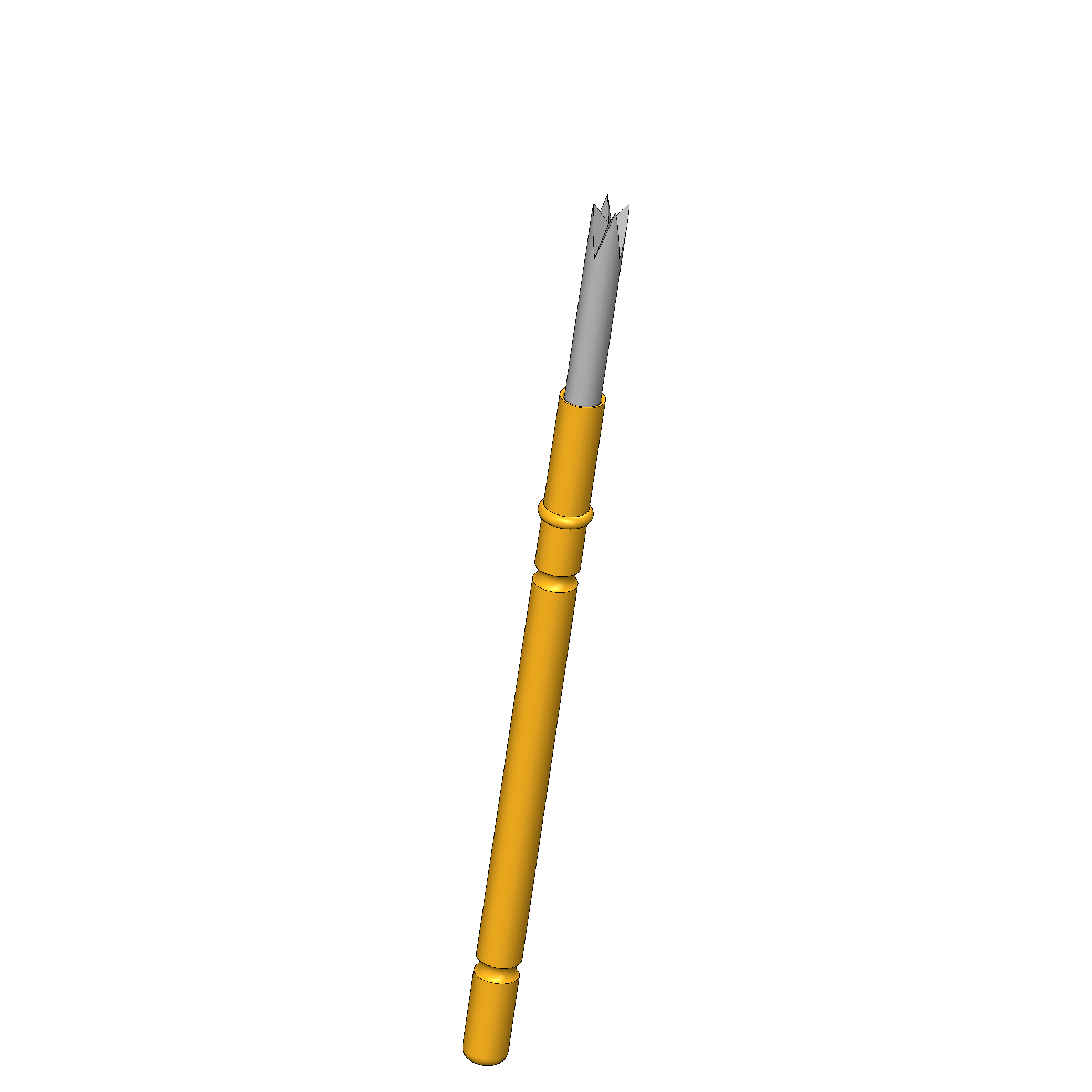 - Mittig-rollierte Variante mit geringem Taumelspiel zur Kontaktierung von kleinen Prüfpunkten