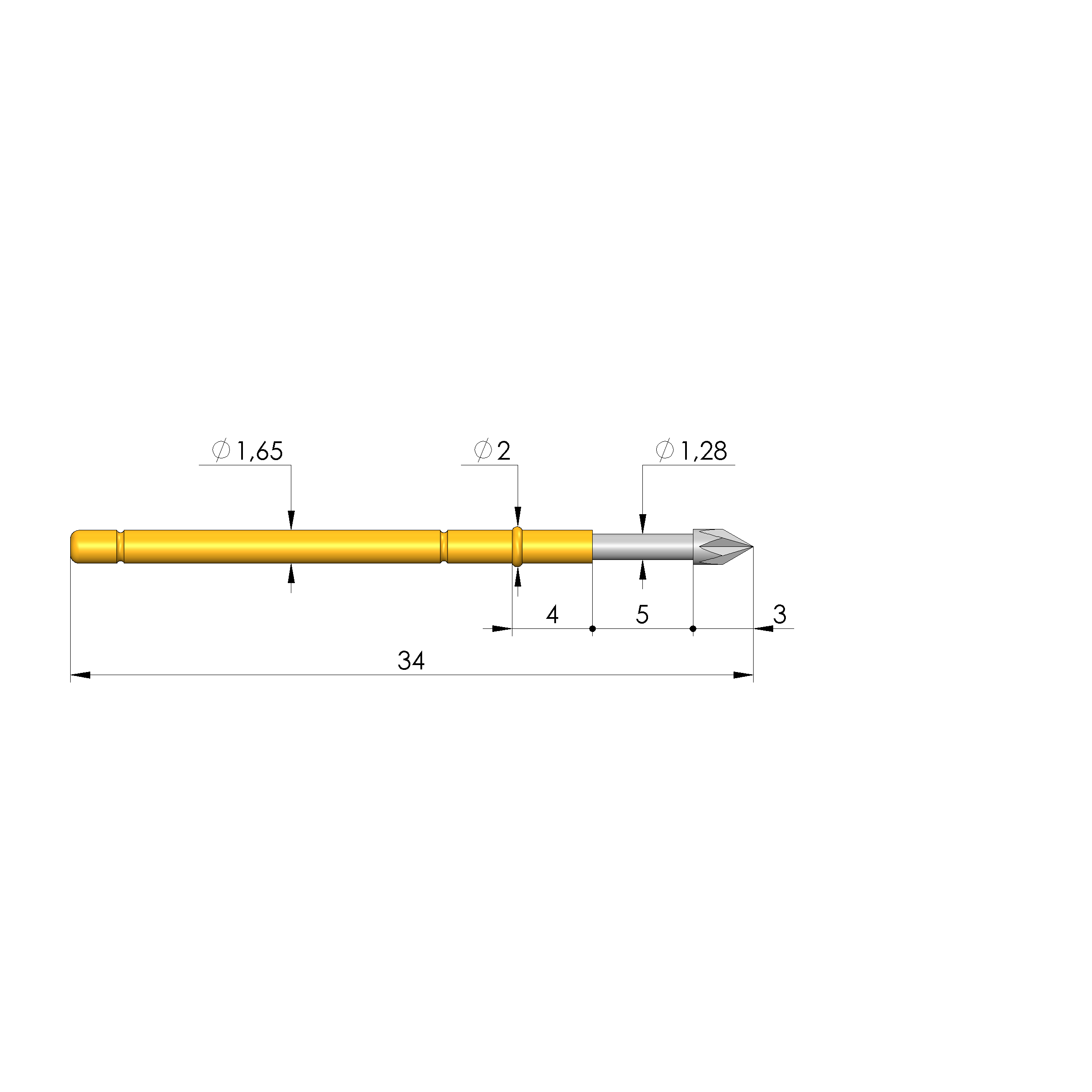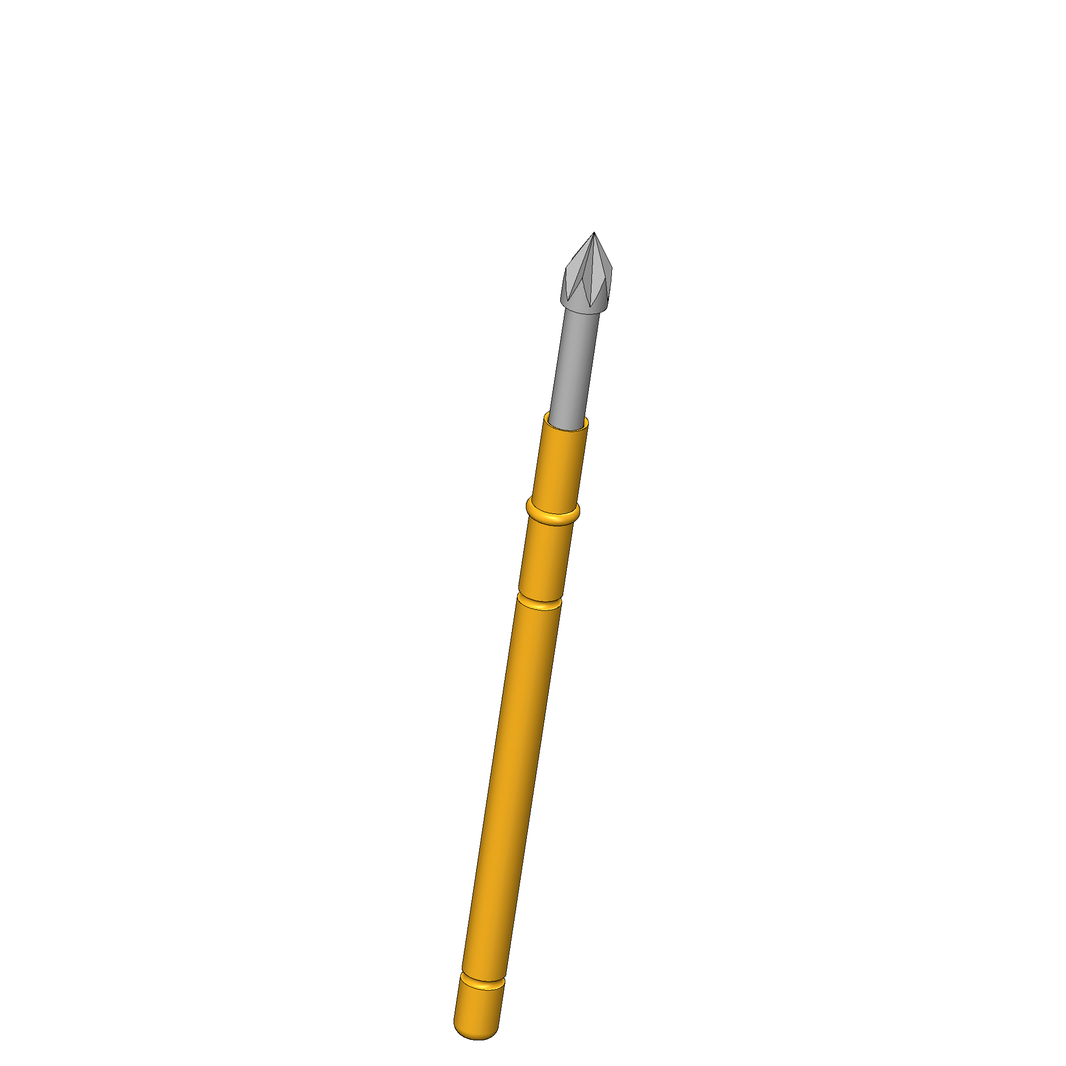 - Mittig-rollierte Variante mit geringem Taumelspiel zur Kontaktierung von kleinen Prüfpunkten