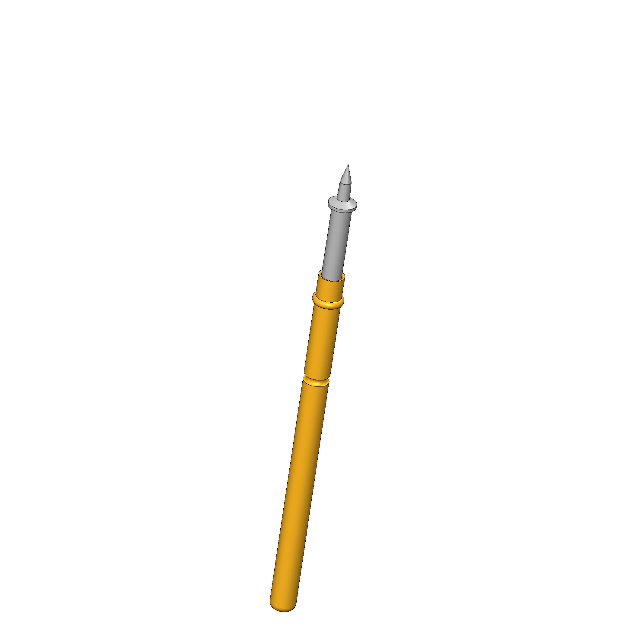 - Mittig-rollierte Variante mit geringem Taumelspiel zur Kontaktierung von kleinen Prüfpunkten