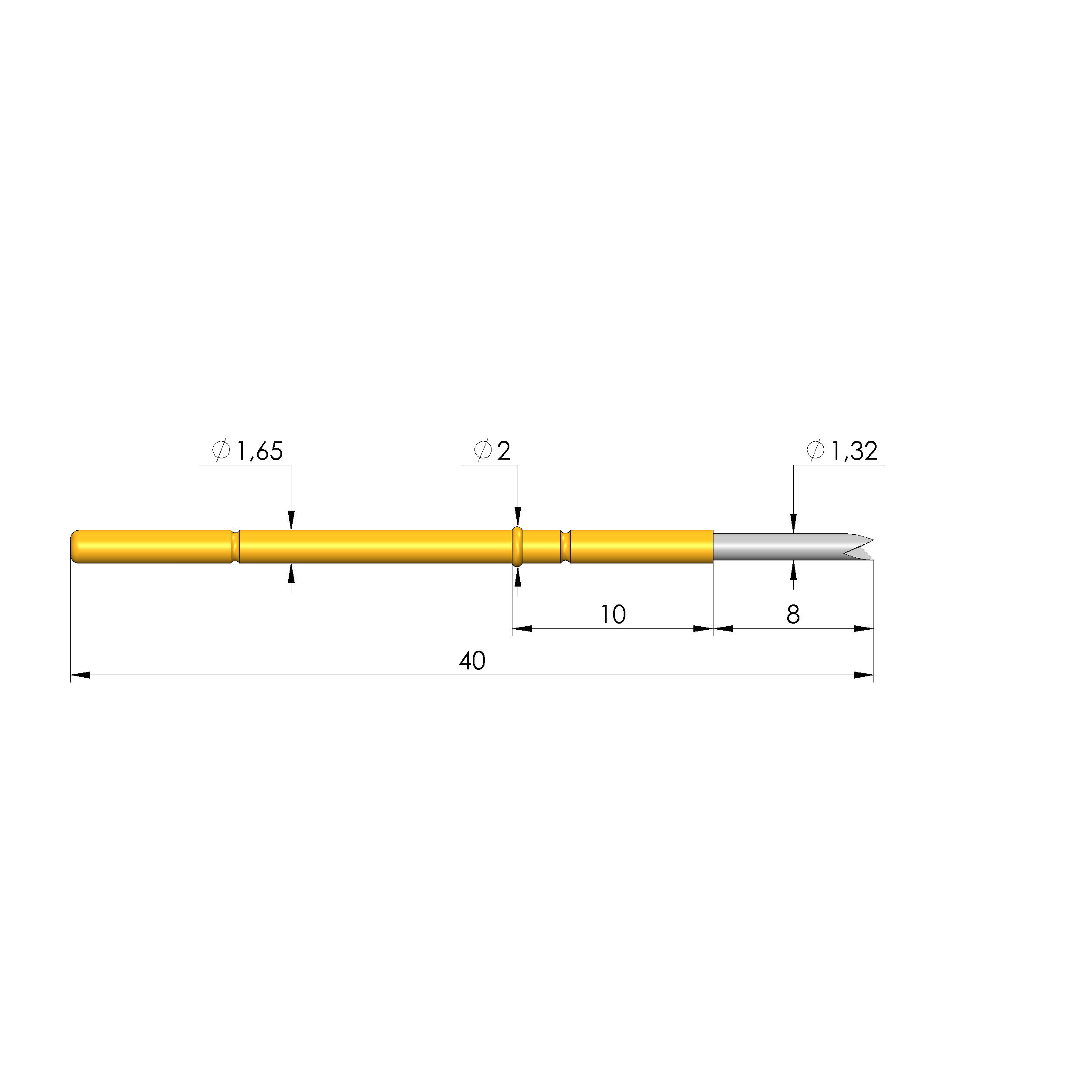 - Mittig-rollierte Variante mit geringem Taumelspiel zur Kontaktierung von kleinen Prüfpunkten