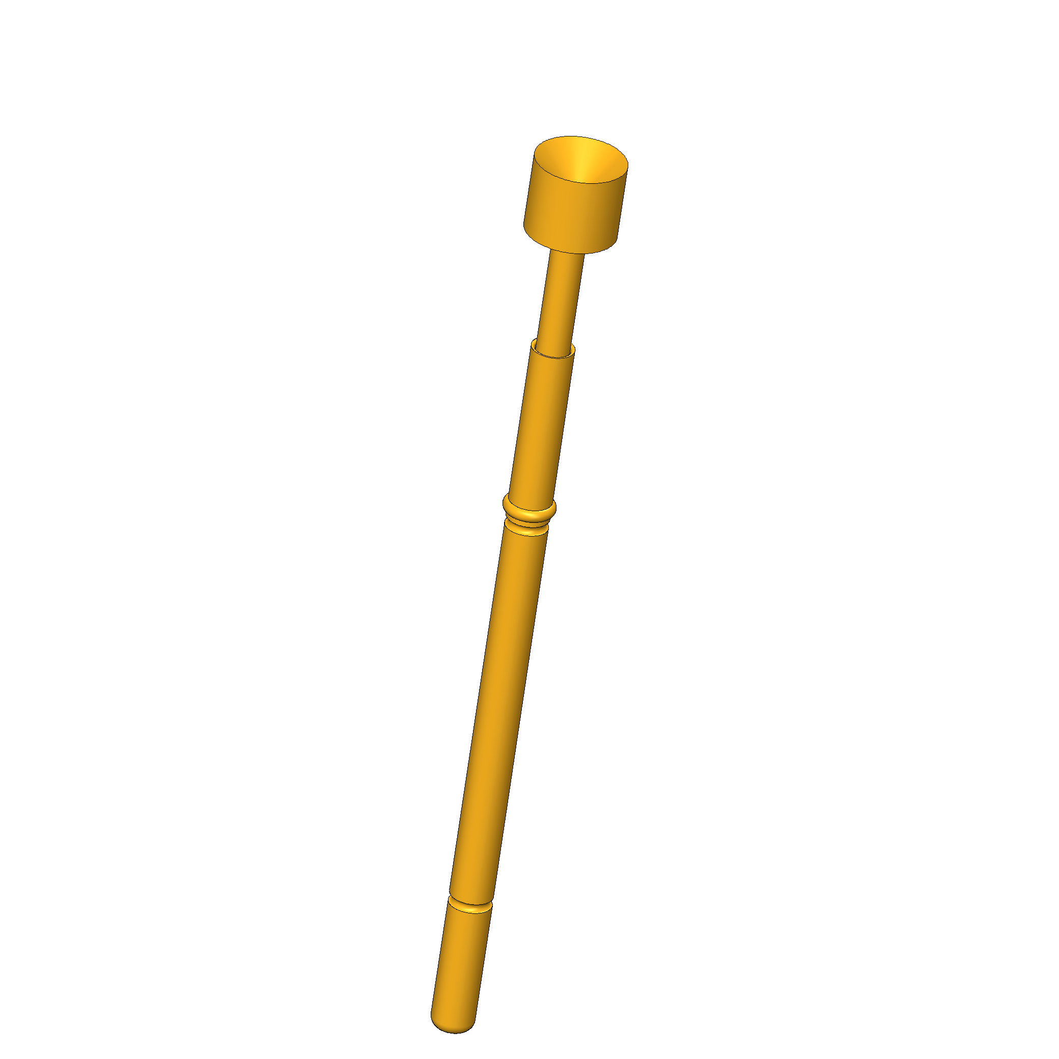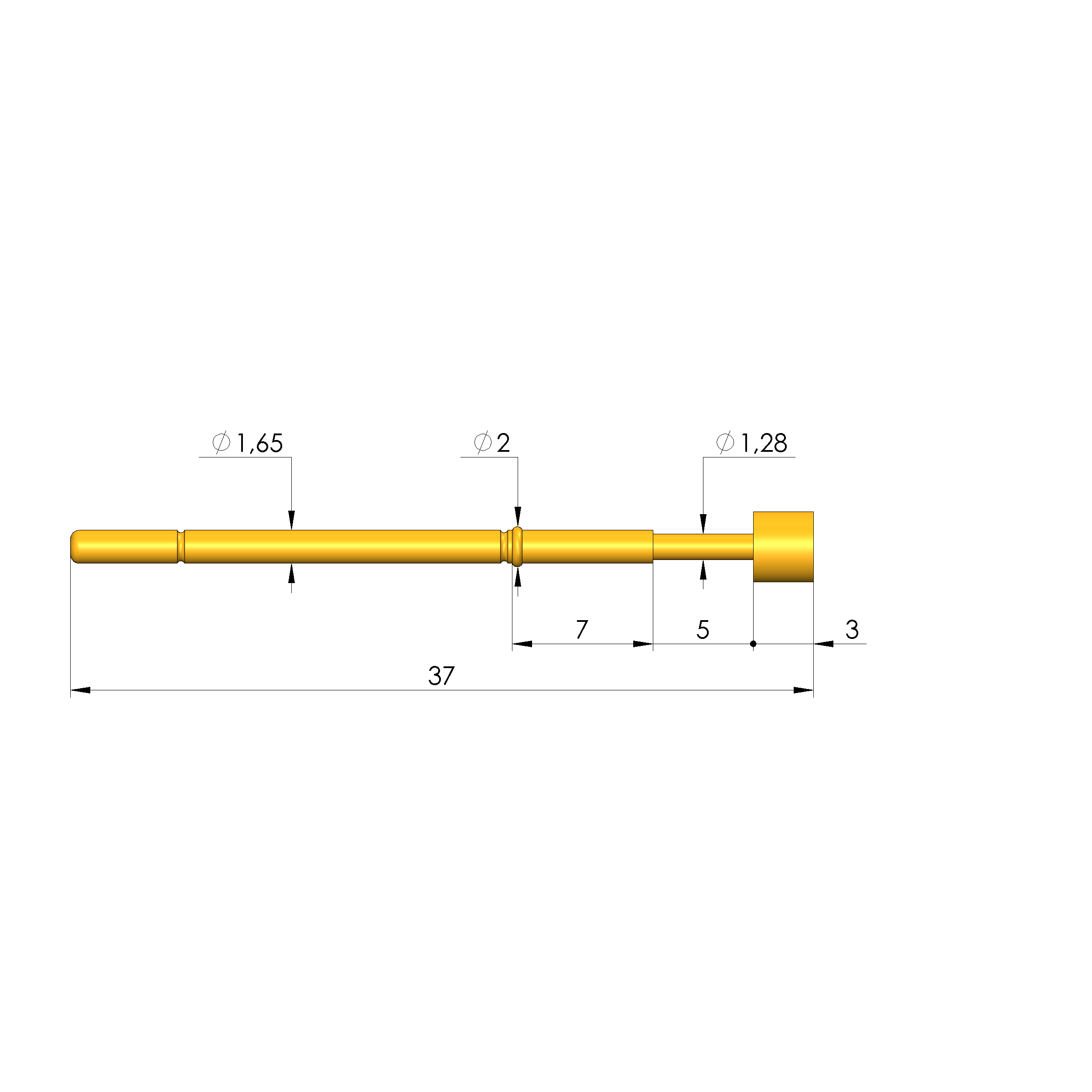 - Mittig-rollierte Variante mit geringem Taumelspiel zur Kontaktierung von kleinen Prüfpunkten