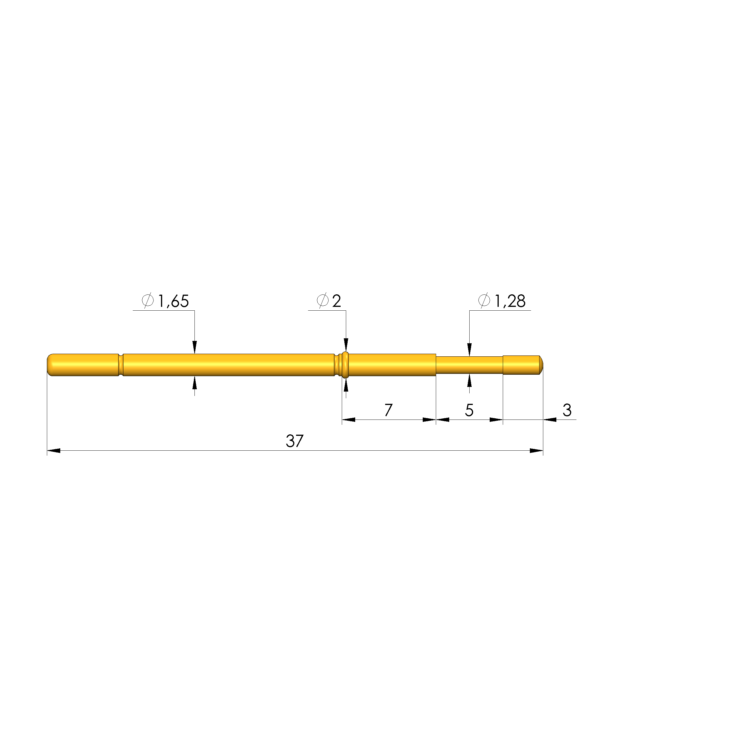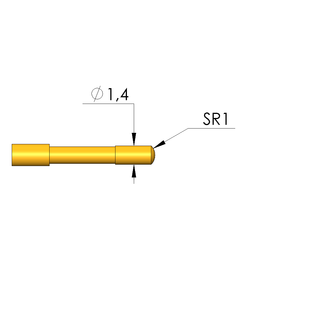- Mittig-rollierte Variante mit geringem Taumelspiel zur Kontaktierung von kleinen Prüfpunkten