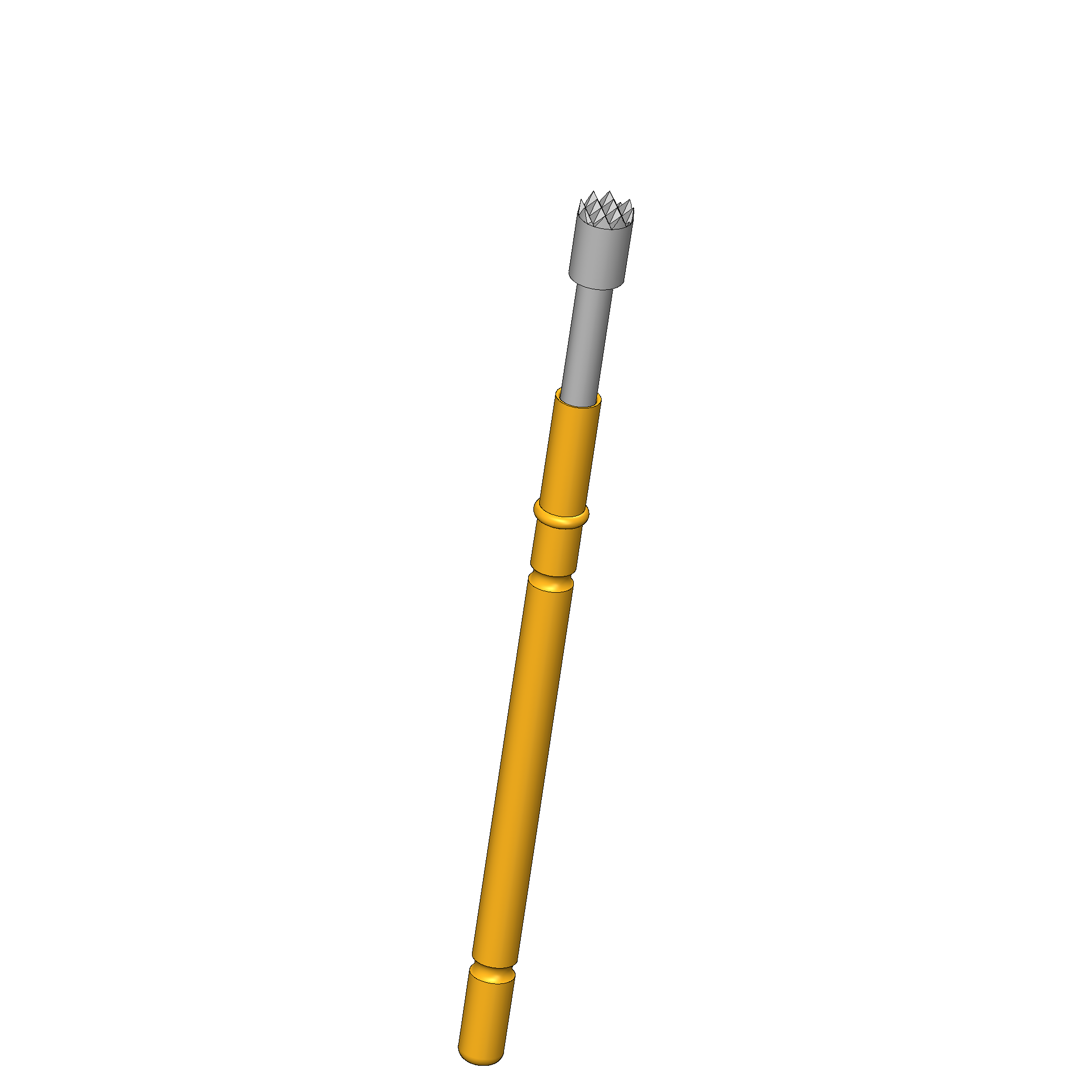 - Mittig-rollierte Variante mit geringem Taumelspiel zur Kontaktierung von kleinen Prüfpunkten