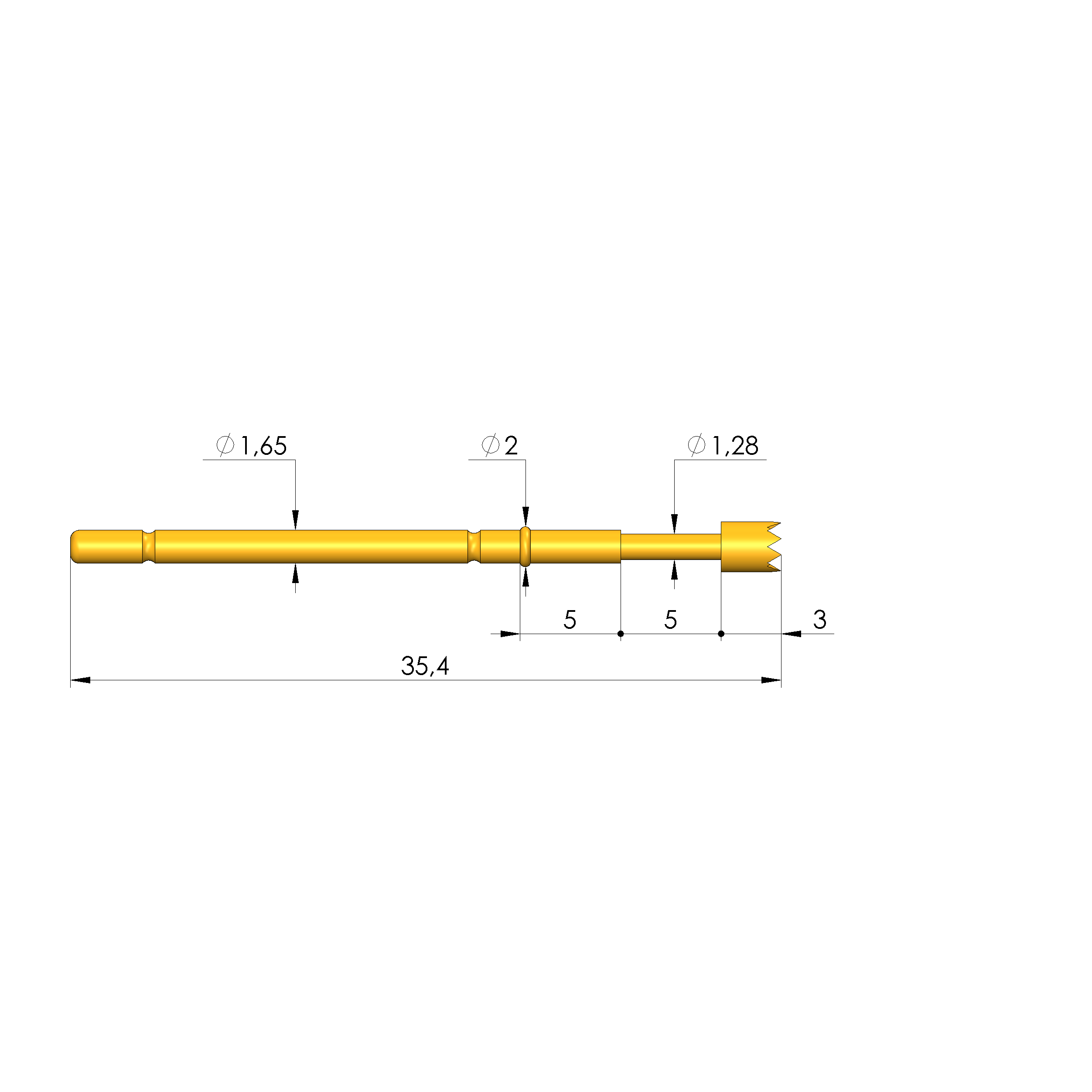 - Mittig-rollierte Variante mit geringem Taumelspiel zur Kontaktierung von kleinen Prüfpunkten