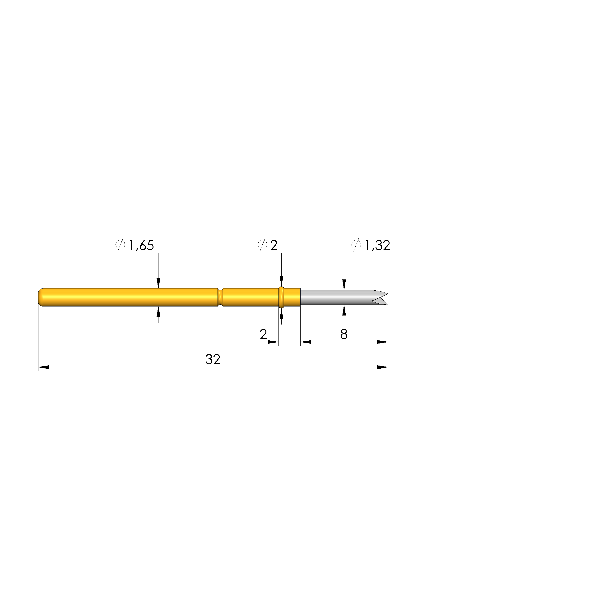 - Mittig-rollierte Variante mit geringem Taumelspiel zur Kontaktierung von kleinen Prüfpunkten