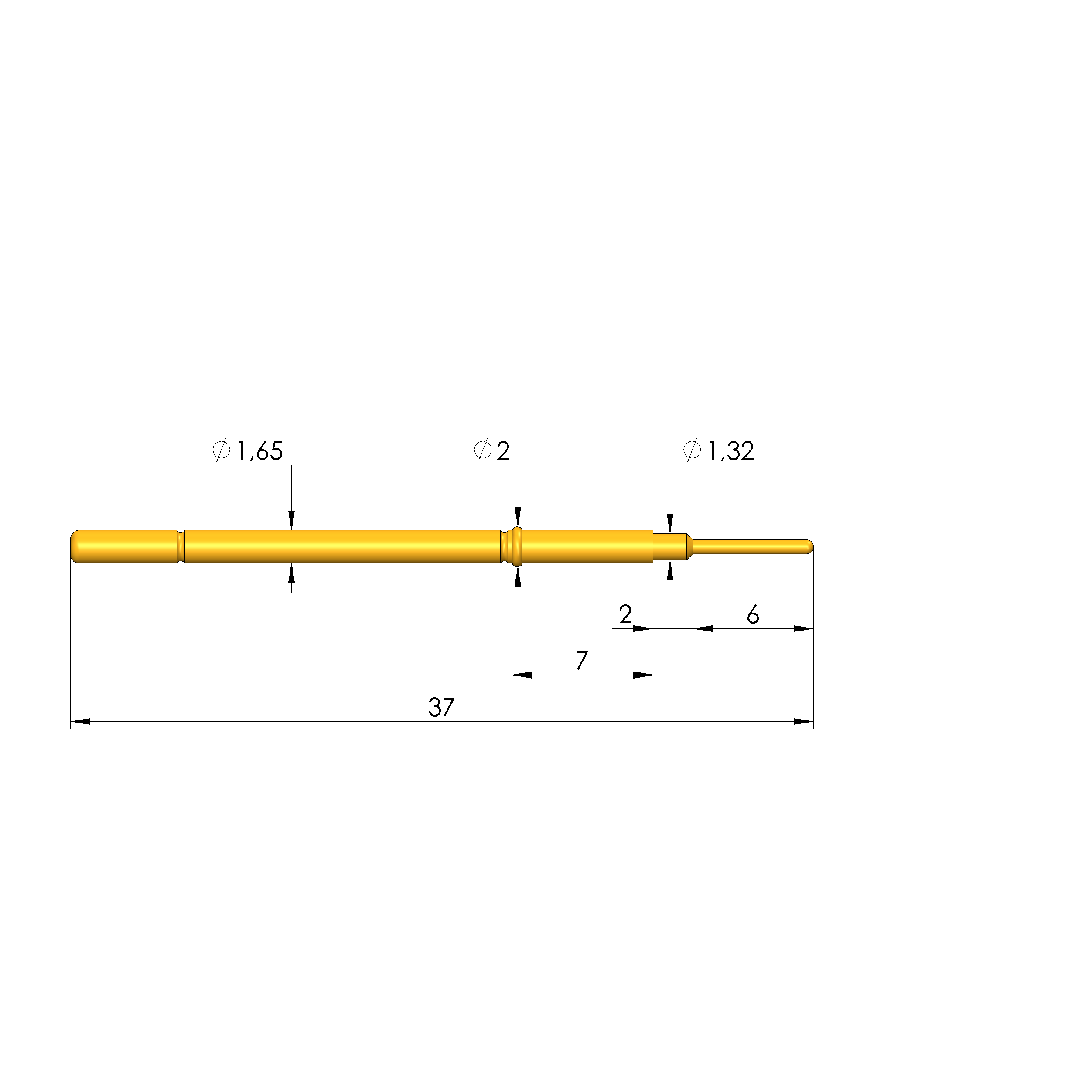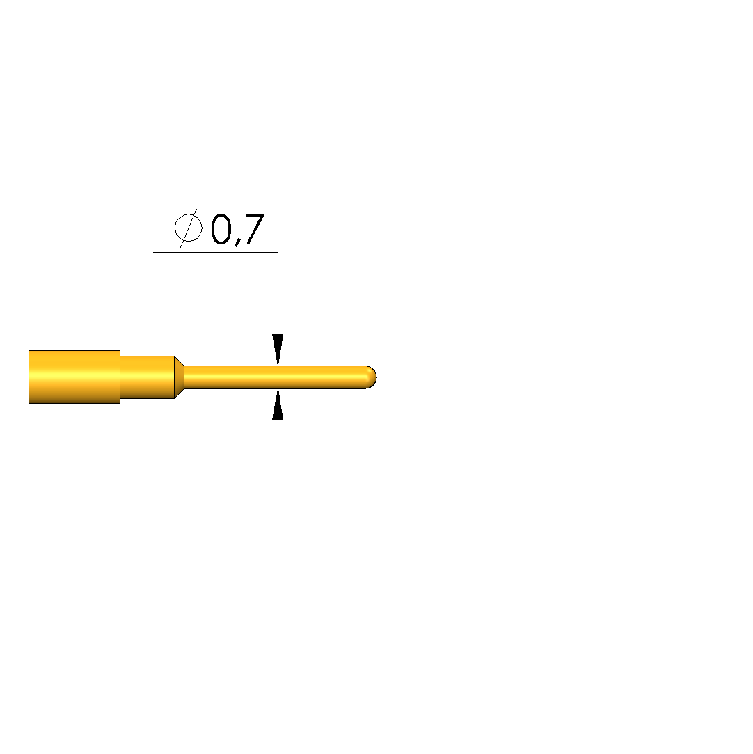 - Mittig-rollierte Variante mit geringem Taumelspiel zur Kontaktierung von kleinen Prüfpunkten