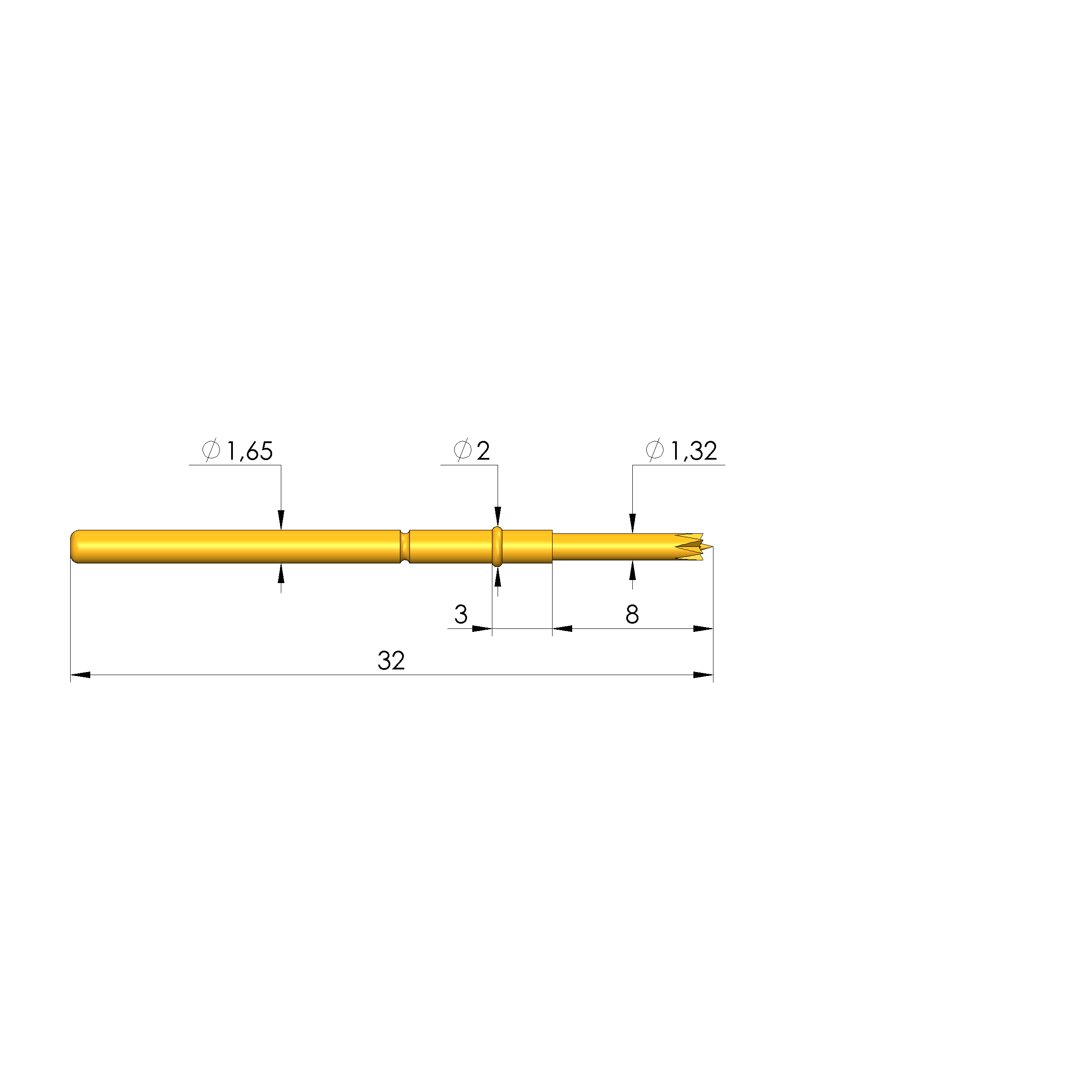 - Mittig-rollierte Variante mit geringem Taumelspiel zur Kontaktierung von kleinen Prüfpunkten