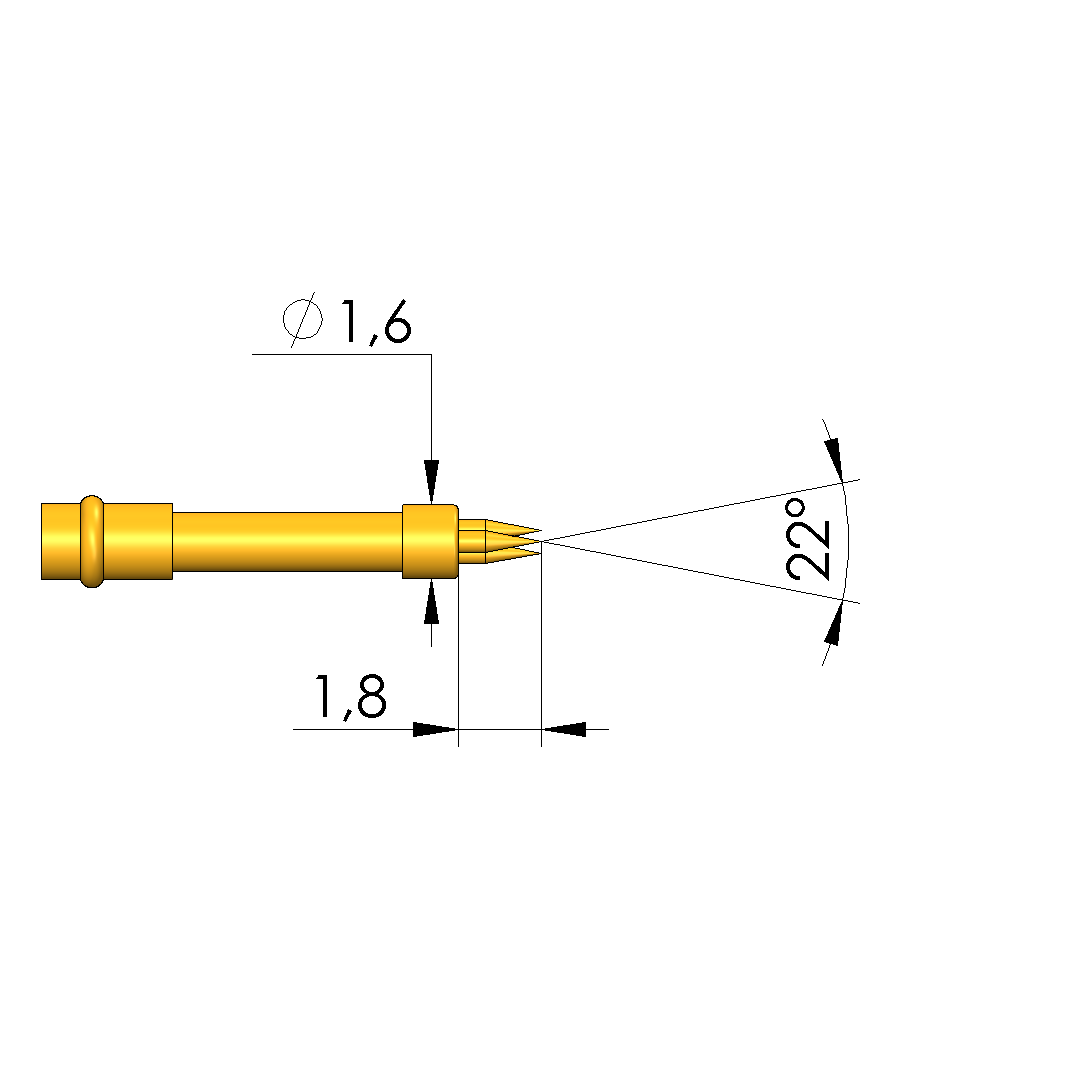 - Mittig-rollierte Variante mit geringem Taumelspiel zur Kontaktierung von kleinen Prüfpunkten