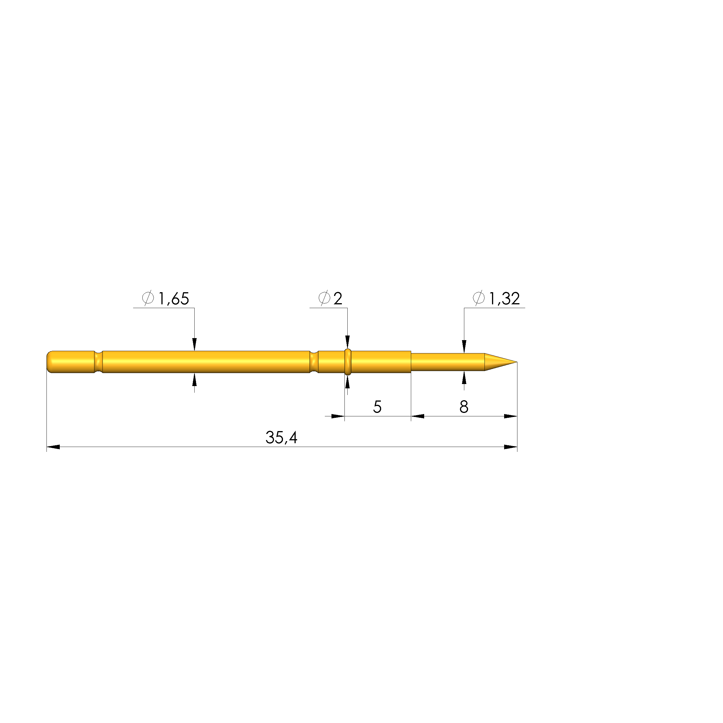 - Mittig-rollierte Variante mit geringem Taumelspiel zur Kontaktierung von kleinen Prüfpunkten