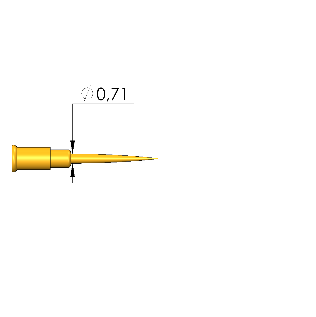 - Mittig-rollierte Variante mit geringem Taumelspiel zur Kontaktierung von kleinen Prüfpunkten