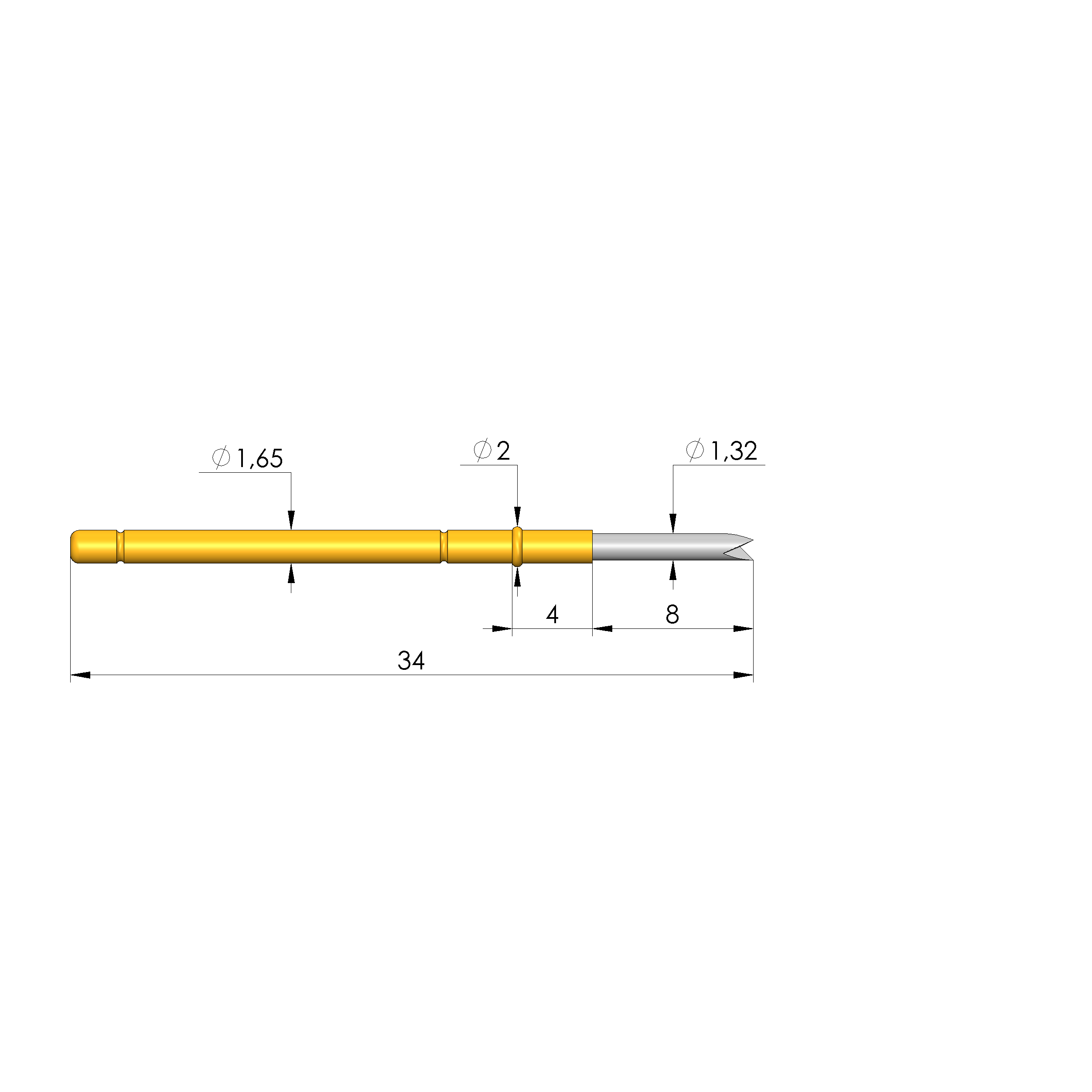 - Mittig-rollierte Variante mit geringem Taumelspiel zur Kontaktierung von kleinen Prüfpunkten