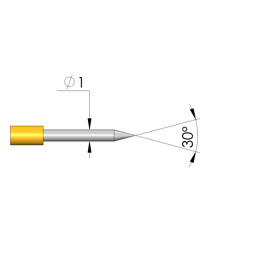 - Kopfform: 01 Spitze 30°, selbstreinigend
