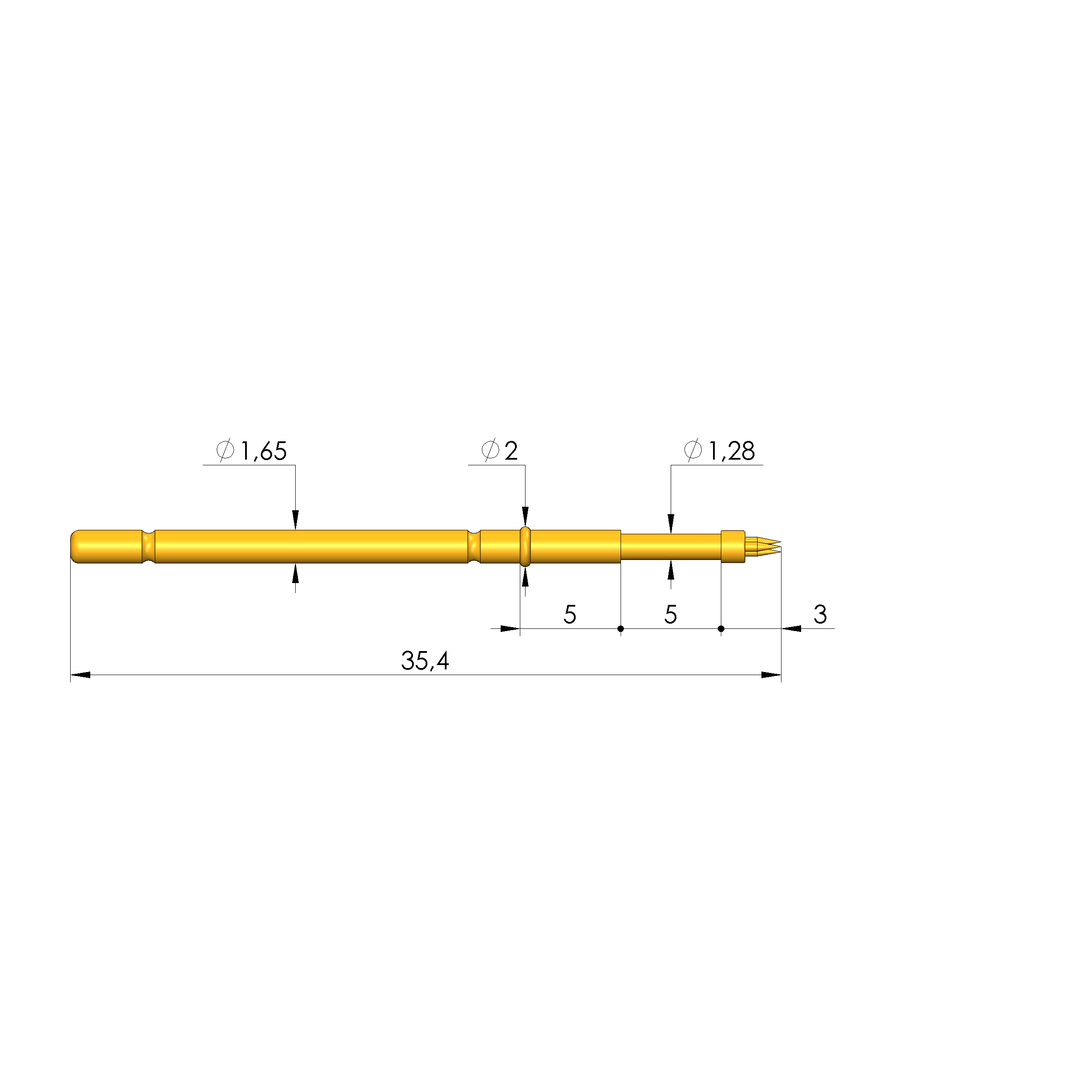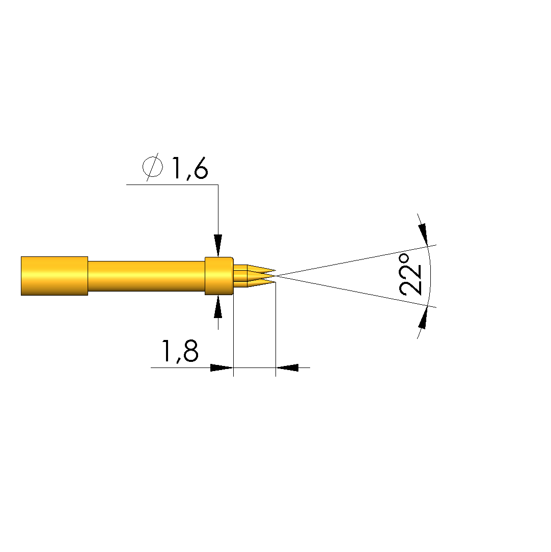 - Mittig-rollierte Variante mit geringem Taumelspiel zur Kontaktierung von kleinen Prüfpunkten