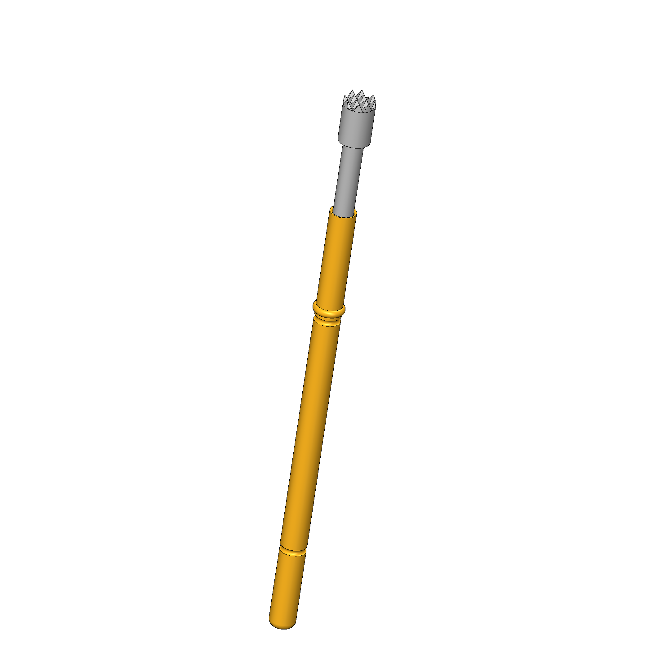 - Mittig-rollierte Variante mit geringem Taumelspiel zur Kontaktierung von kleinen Prüfpunkten