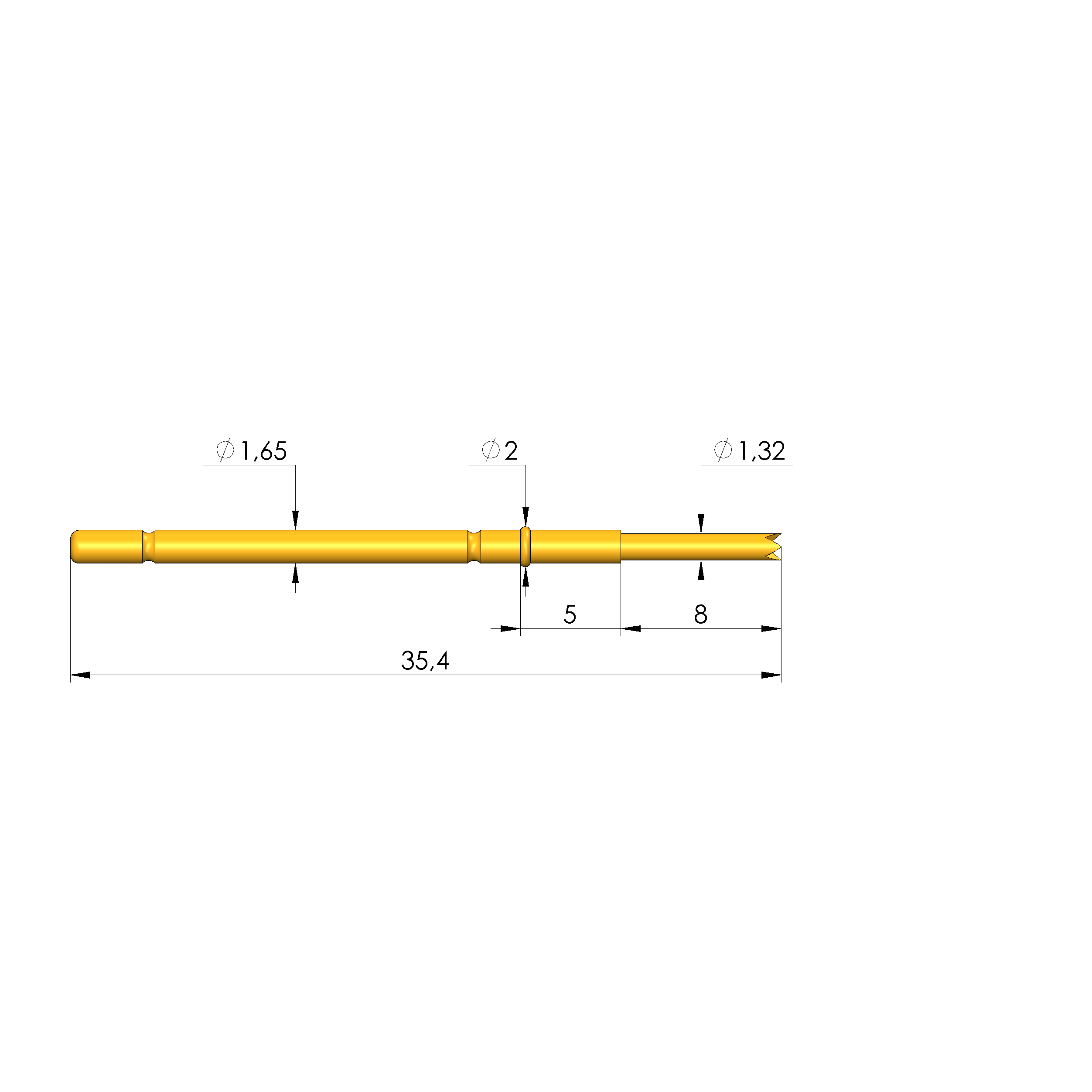 - Mittig-rollierte Variante mit geringem Taumelspiel zur Kontaktierung von kleinen Prüfpunkten