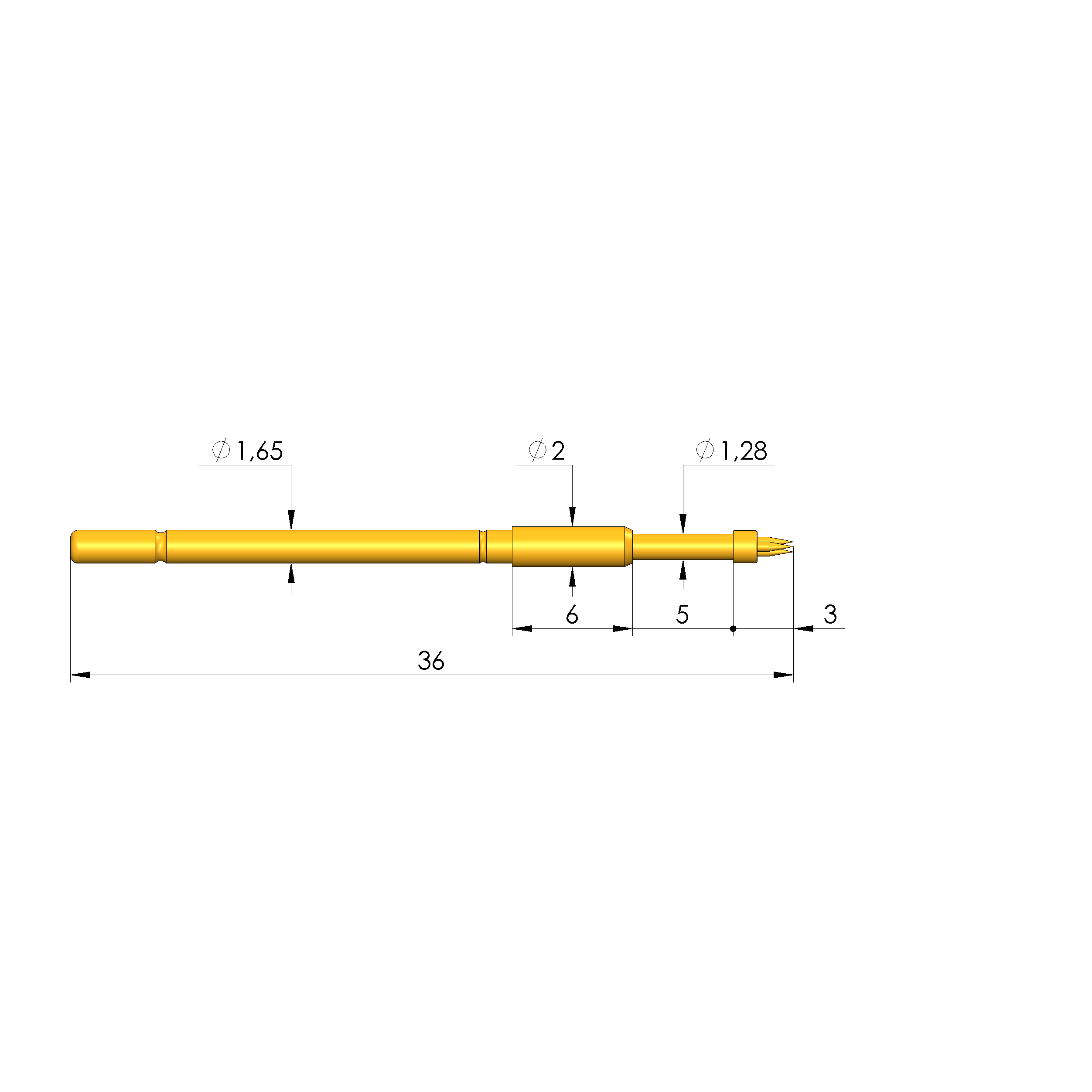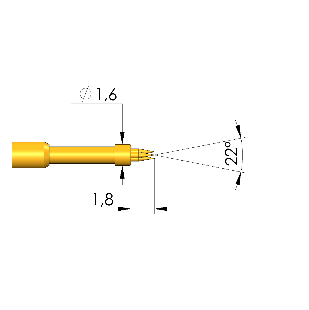 - Mittig-rollierte Variante mit geringem Taumelspiel zur Kontaktierung von kleinen Prüfpunkten