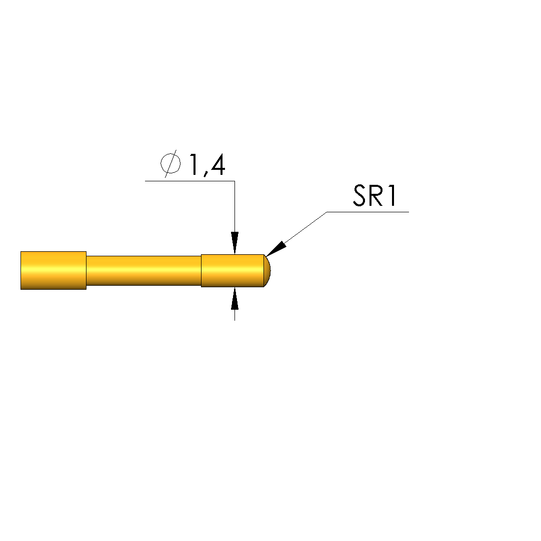 - Mittig-rollierte Variante mit geringem Taumelspiel zur Kontaktierung von kleinen Prüfpunkten
