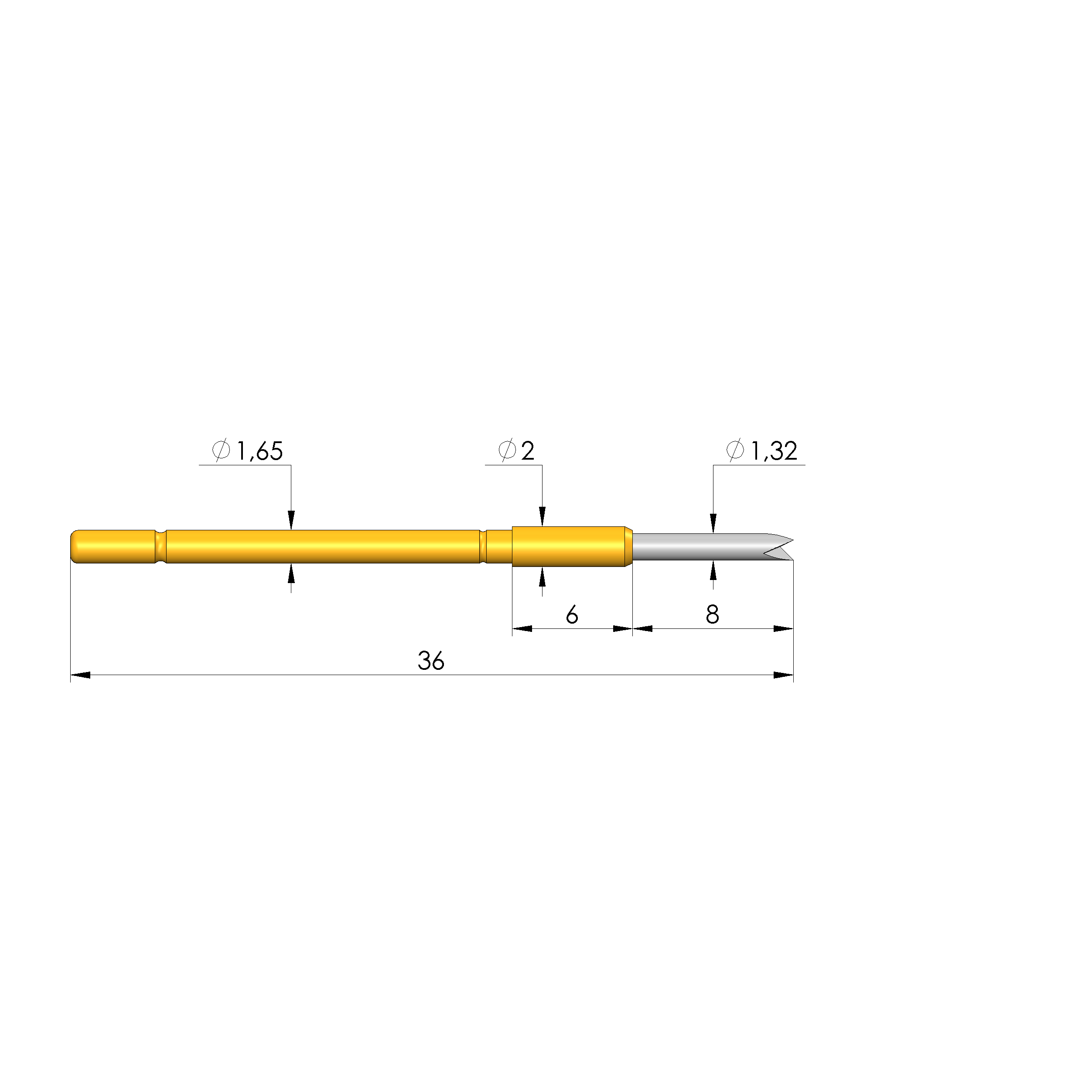 - Gesamtlänge: 36 mm