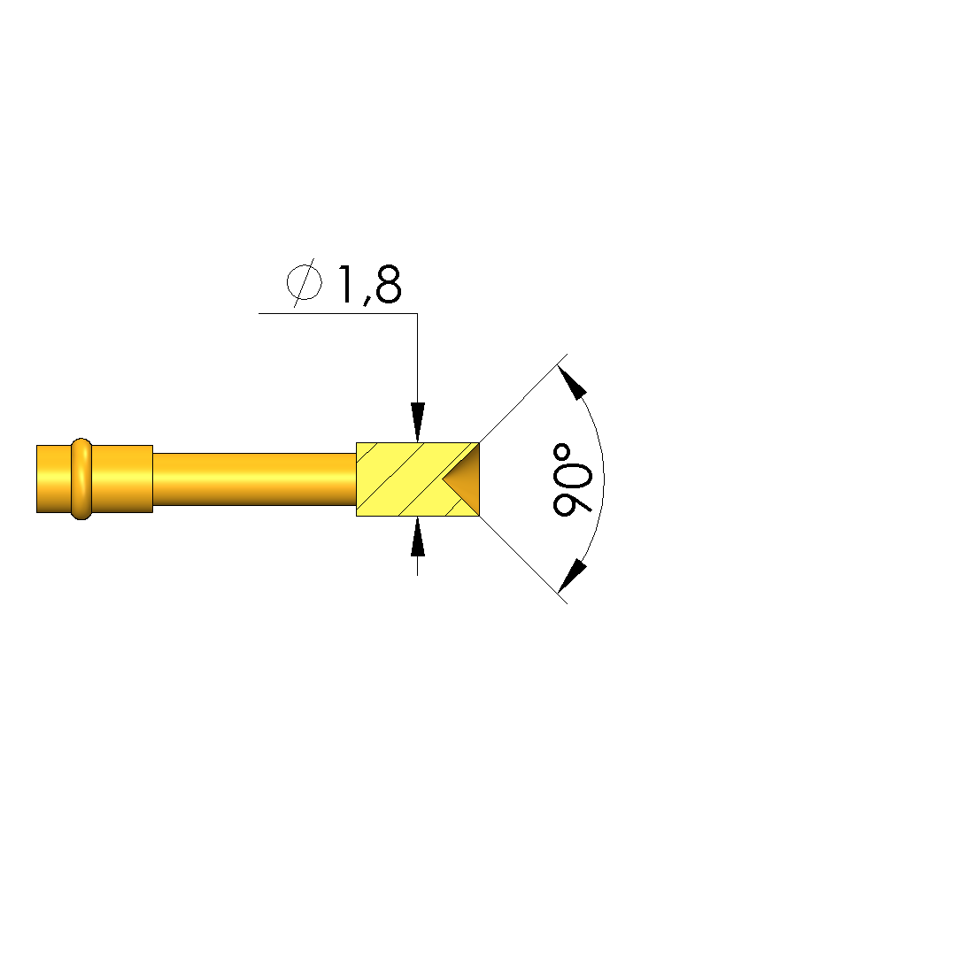 - Mittig-rollierte Variante mit geringem Taumelspiel zur Kontaktierung von kleinen Prüfpunkten