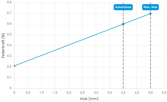 - Federkraft bei Arbeitshub: 0,6 N