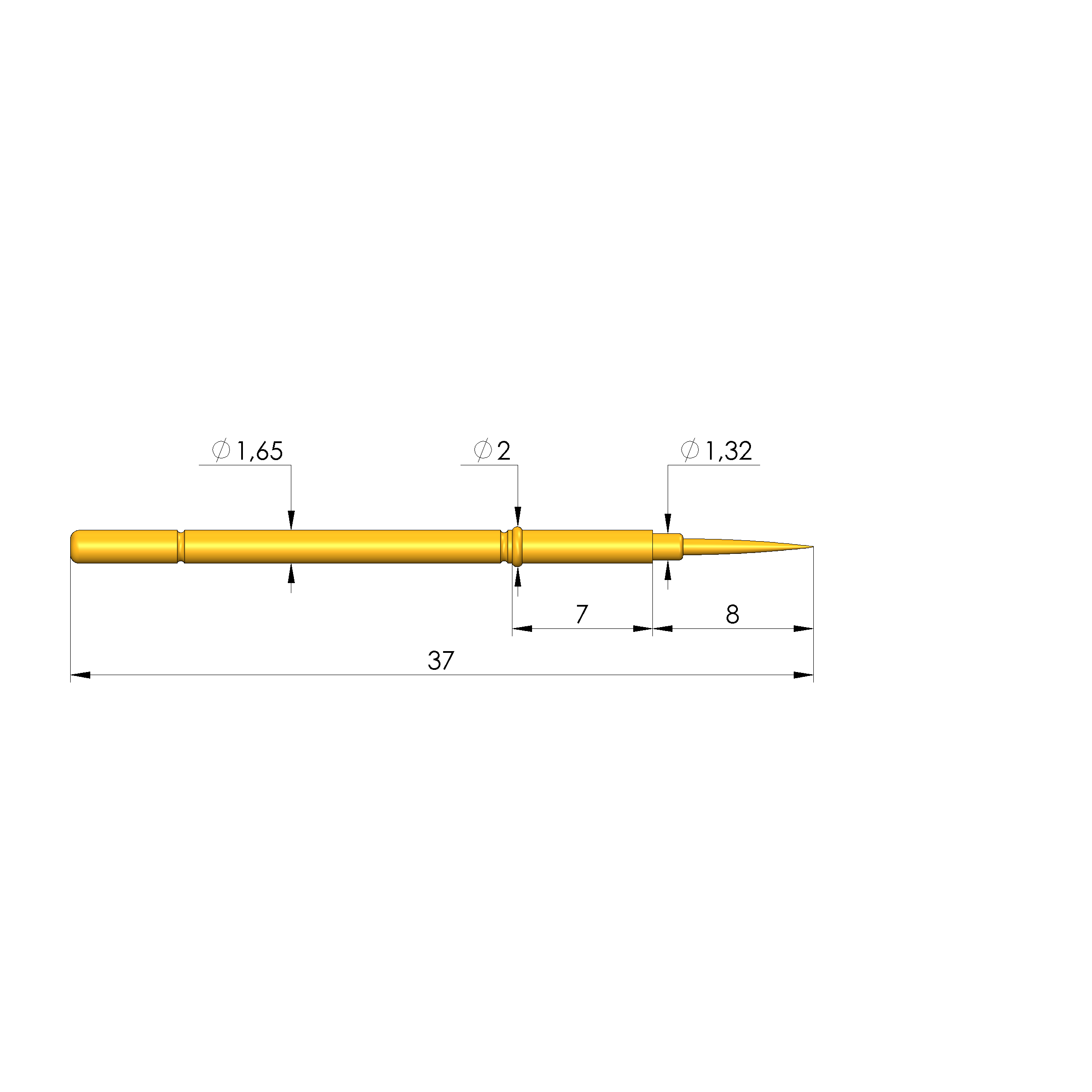 - Mittig-rollierte Variante mit geringem Taumelspiel zur Kontaktierung von kleinen Prüfpunkten
