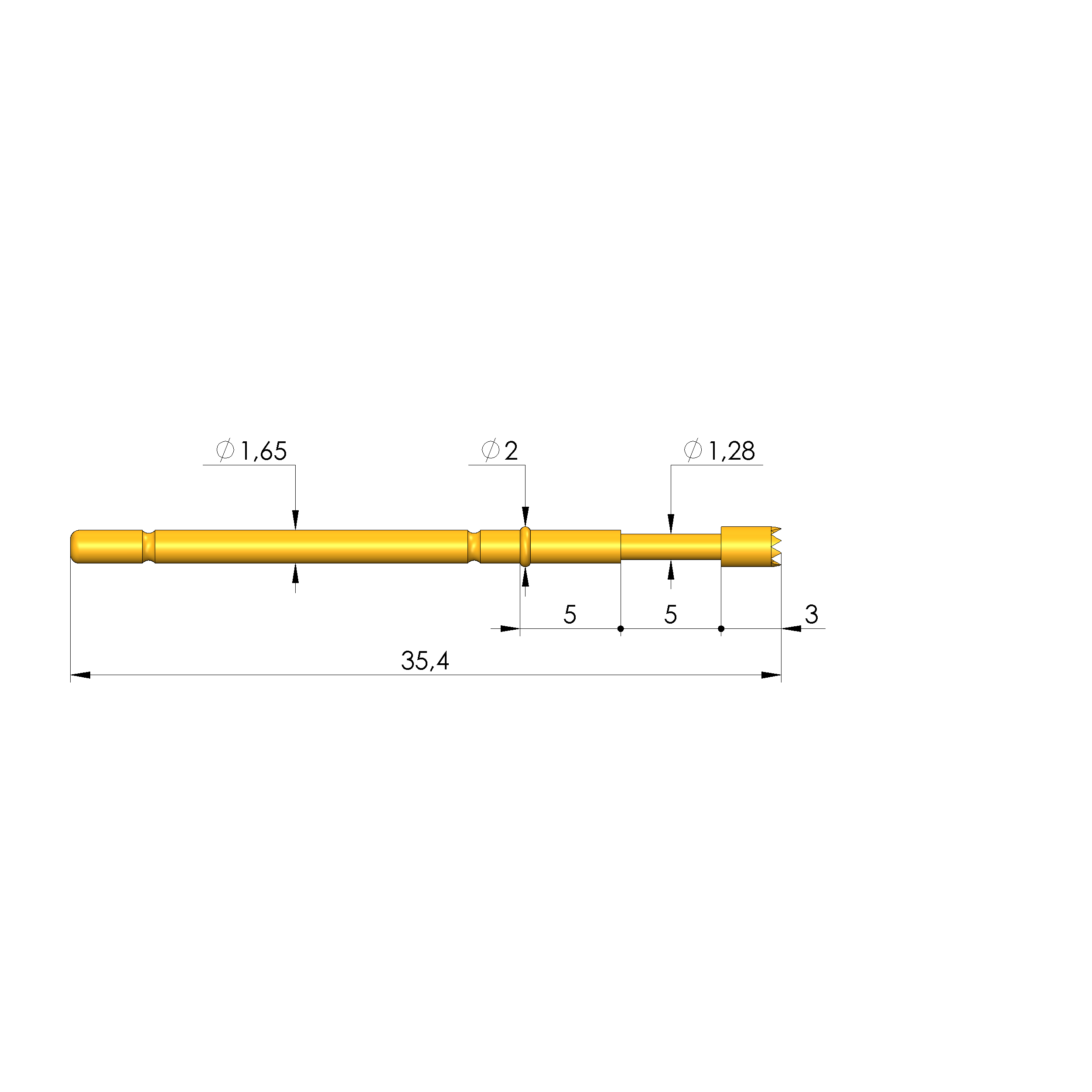 - Mittig-rollierte Variante mit geringem Taumelspiel zur Kontaktierung von kleinen Prüfpunkten