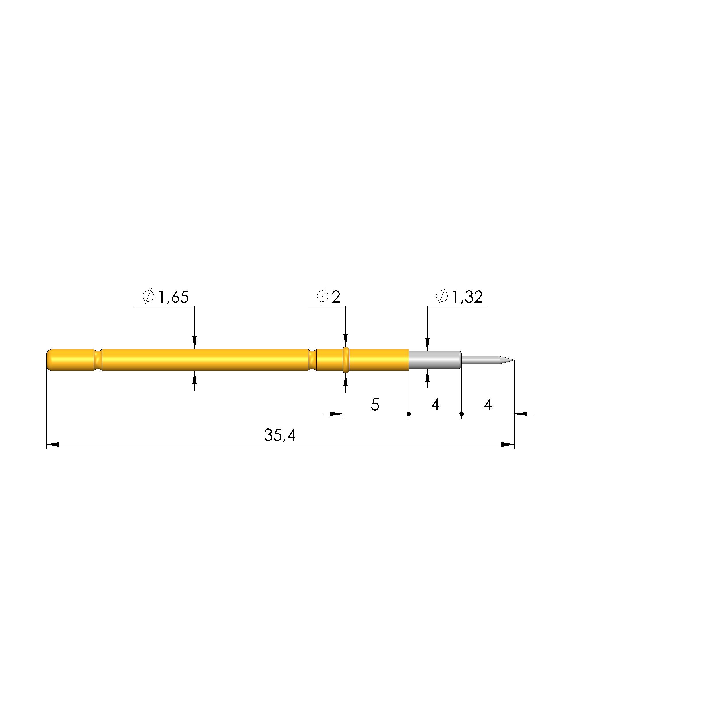 - Mittig-rollierte Variante mit geringem Taumelspiel zur Kontaktierung von kleinen Prüfpunkten