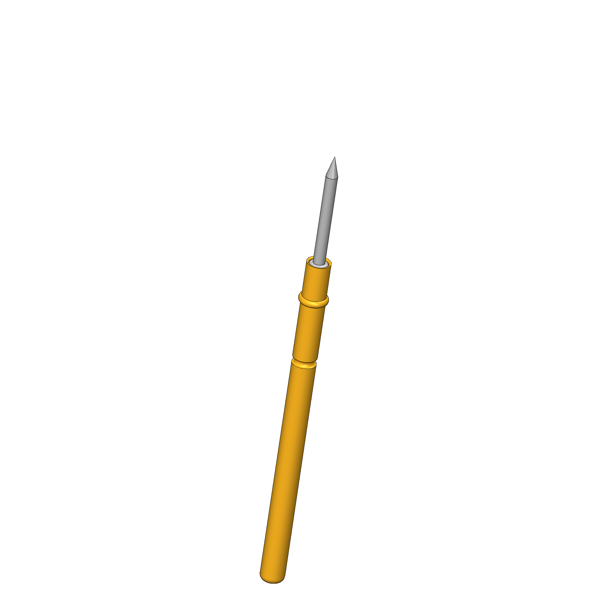 - Mittig-rollierte Variante mit geringem Taumelspiel zur Kontaktierung von kleinen Prüfpunkten