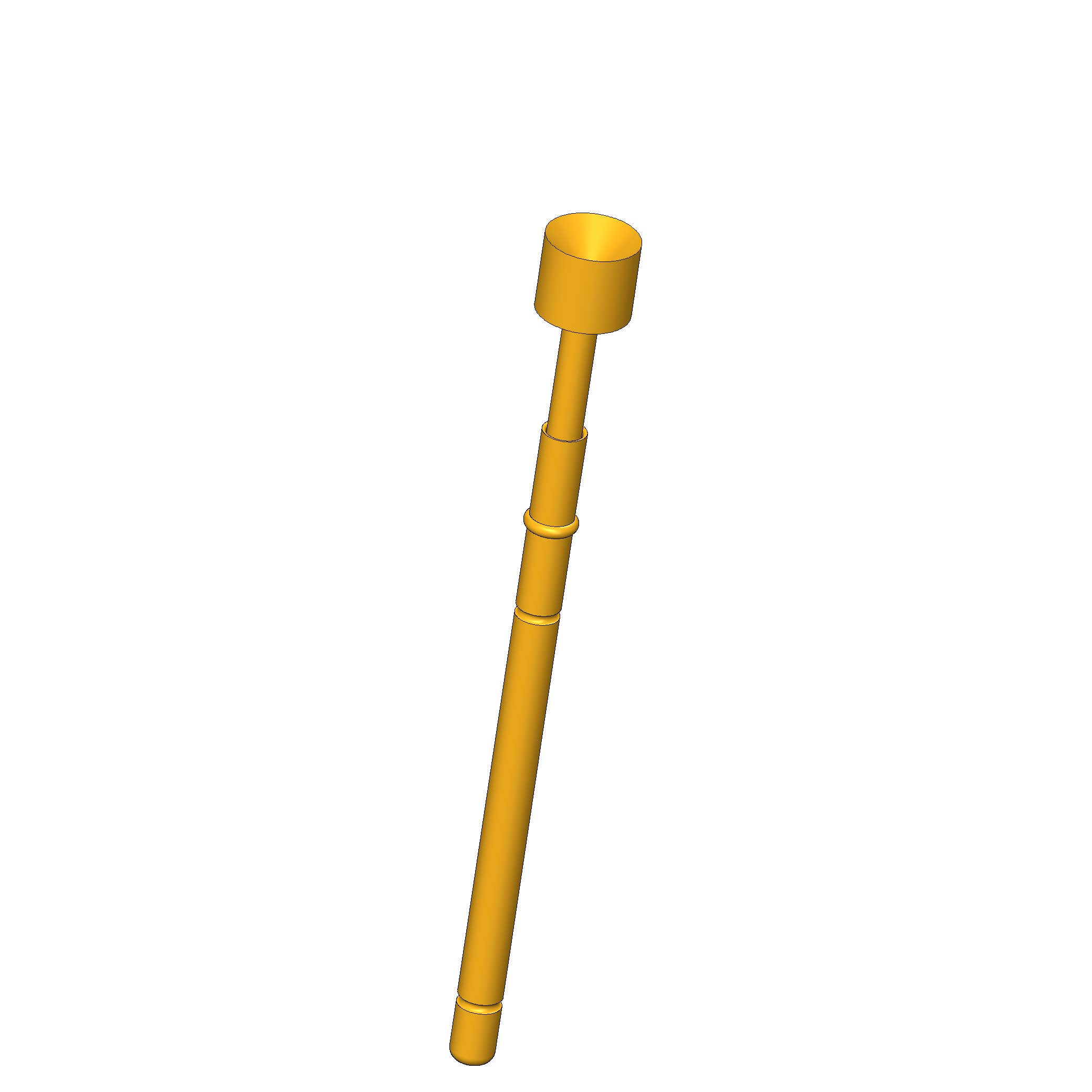 - Mittig-rollierte Variante mit geringem Taumelspiel zur Kontaktierung von kleinen Prüfpunkten