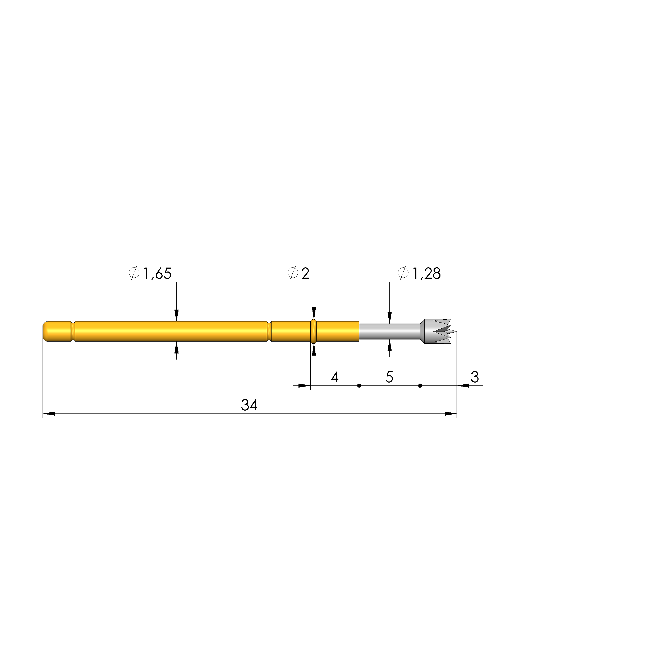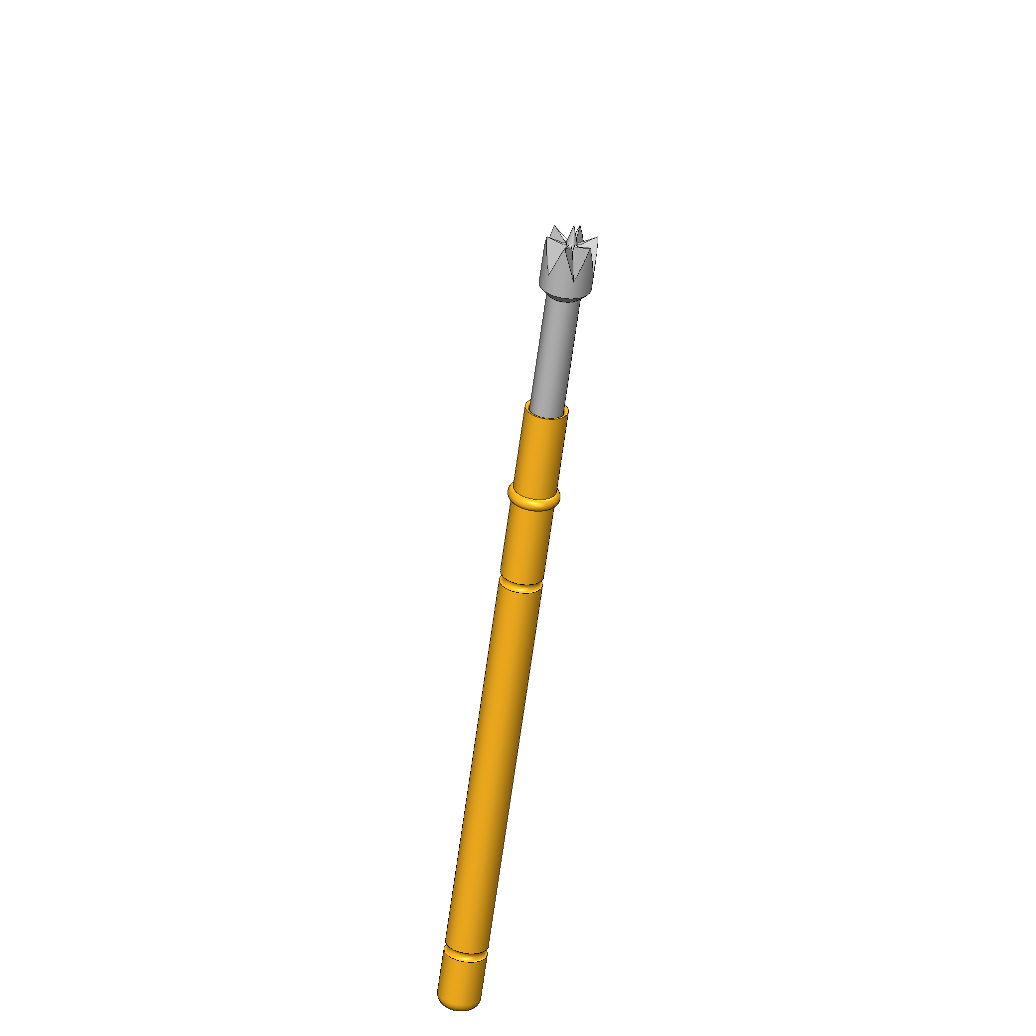 - Mittig-rollierte Variante mit geringem Taumelspiel zur Kontaktierung von kleinen Prüfpunkten