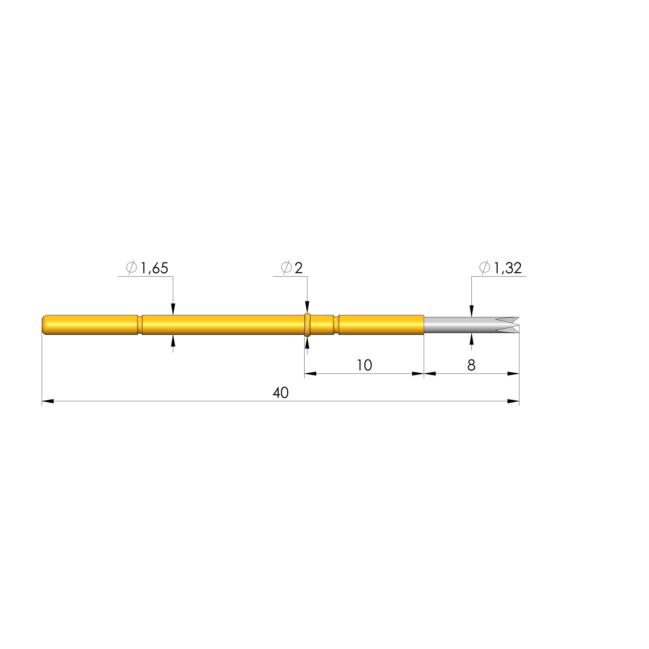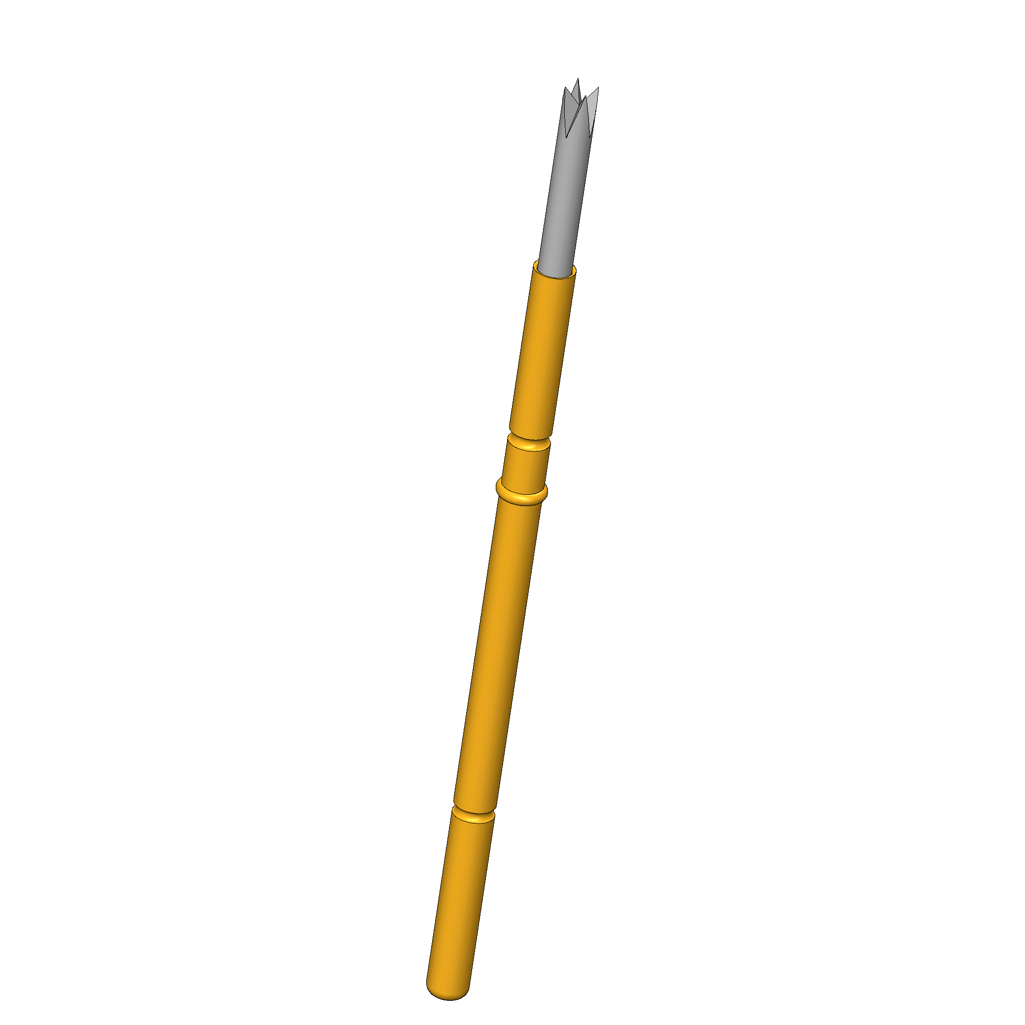 - Mittig-rollierte Variante mit geringem Taumelspiel zur Kontaktierung von kleinen Prüfpunkten