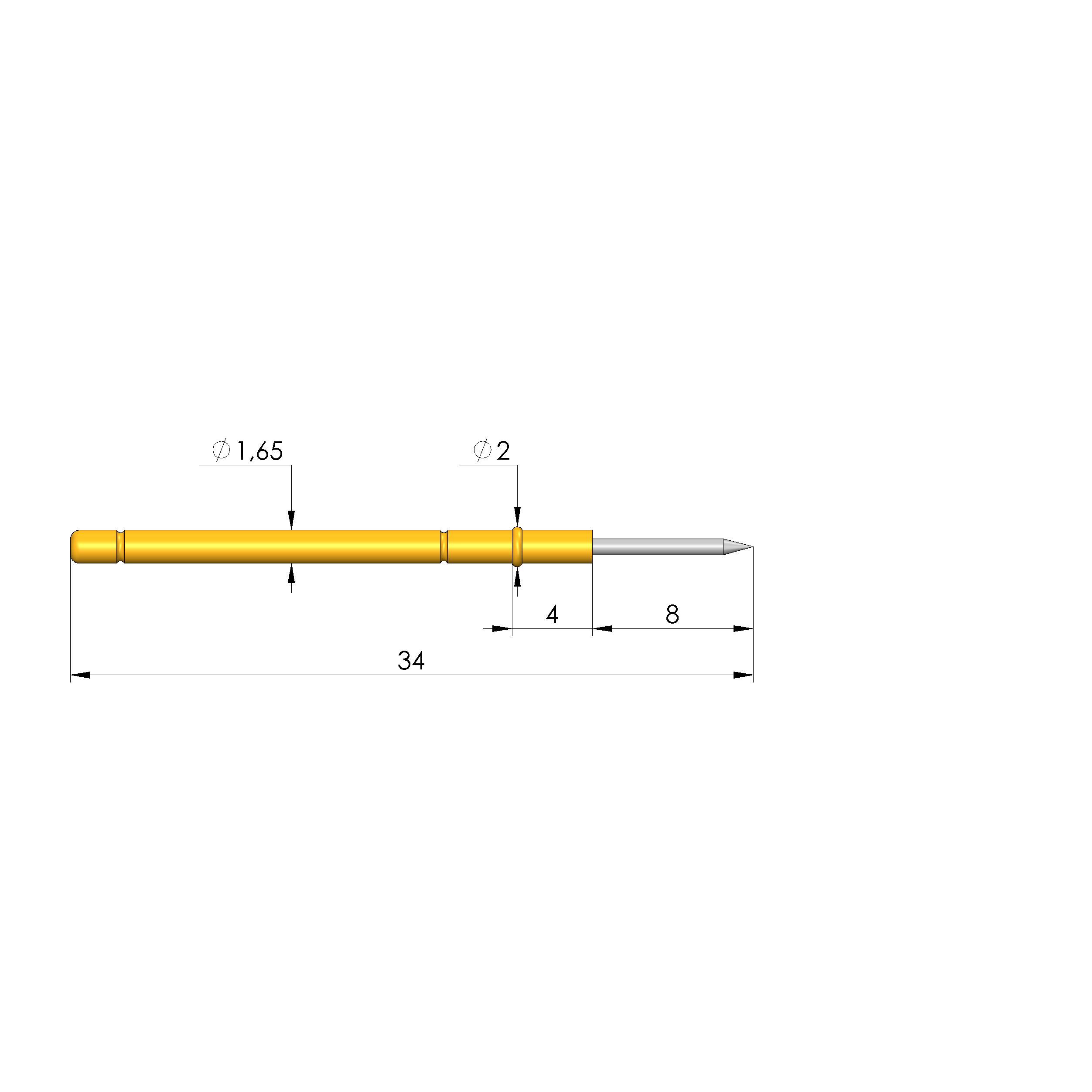 - Mittig-rollierte Variante mit geringem Taumelspiel zur Kontaktierung von kleinen Prüfpunkten