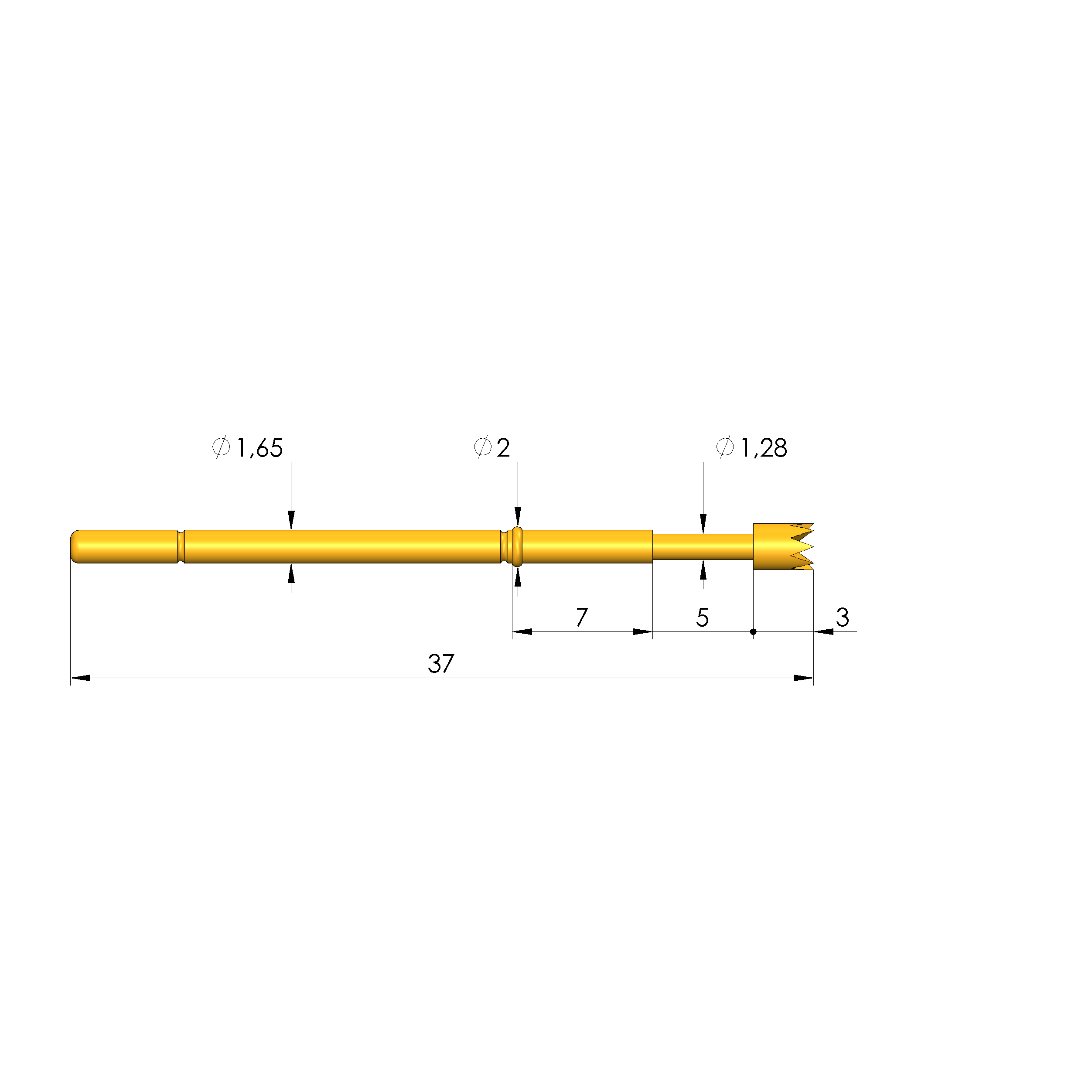 - Mittig-rollierte Variante mit geringem Taumelspiel zur Kontaktierung von kleinen Prüfpunkten