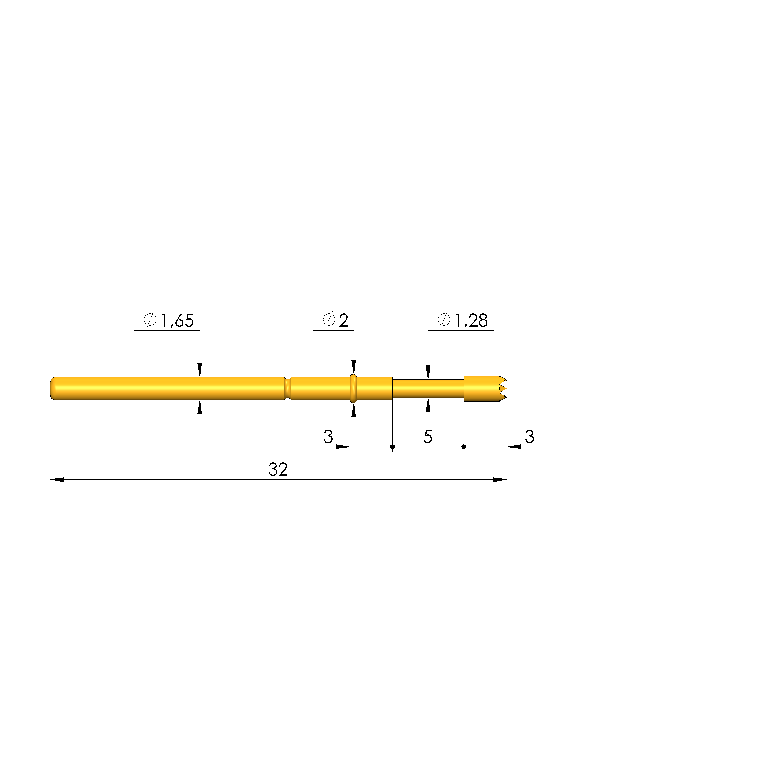 - Mittig-rollierte Variante mit geringem Taumelspiel zur Kontaktierung von kleinen Prüfpunkten