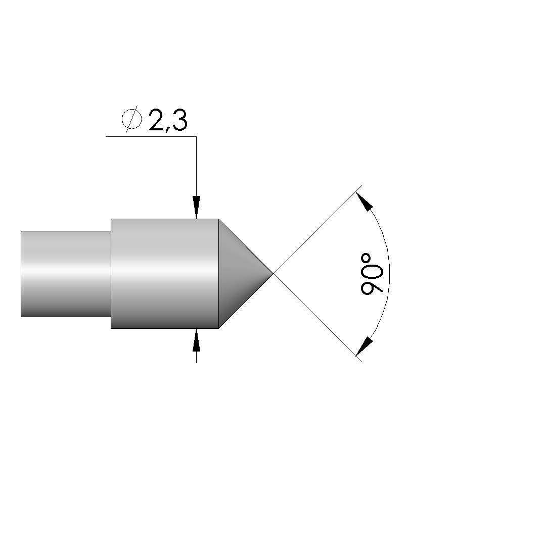• Kopfform: 58 Kegel 90°, selbstreinigend, Sonderlänge