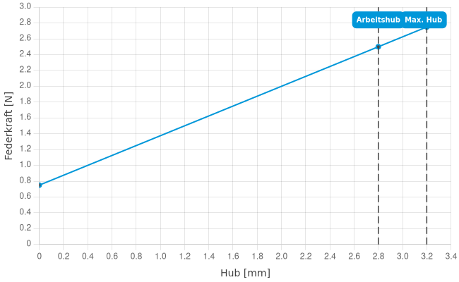 | Federkraft bei Arbeitshub: | 2,5 N |