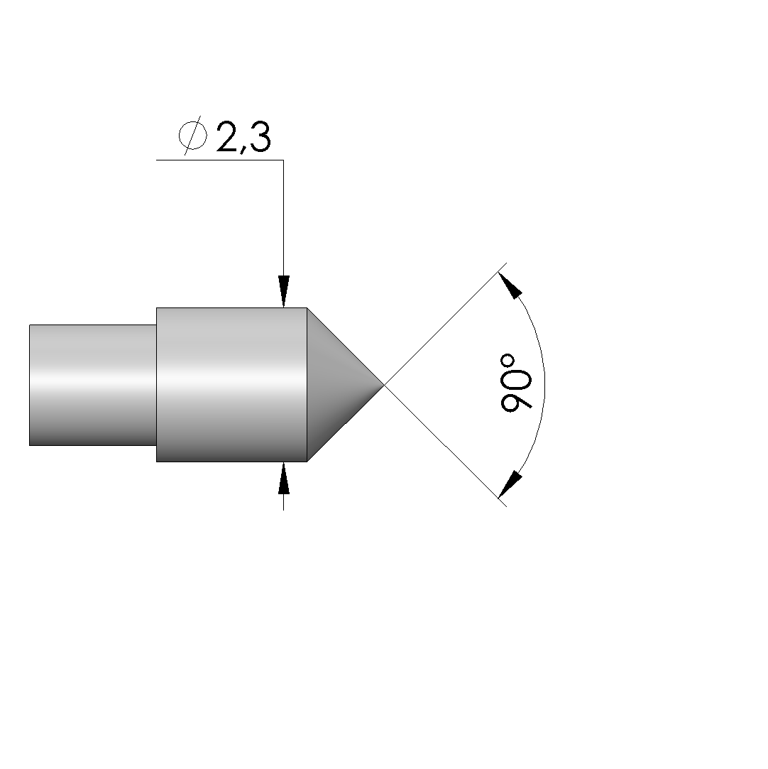 - Kopfform: 58 Kegel 90°, selbstreinigend, Sonderlänge